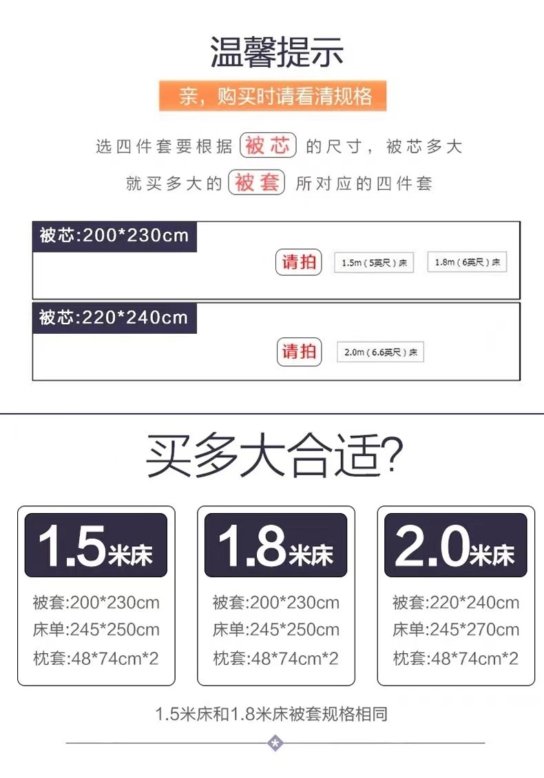 • 1.8m 침대 시트 4장 세트[이불커버 사이즈 2.0*2.3]