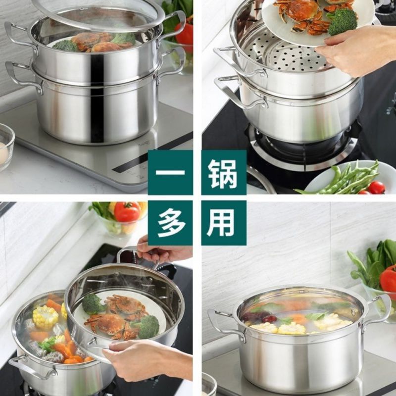 304 스테인레스 스틸 작은 기선 가정용 더블 두꺼운 기선 수프 냄비 유도 쿠커 가스 스토브 유니버설 쿠커스토어 가기