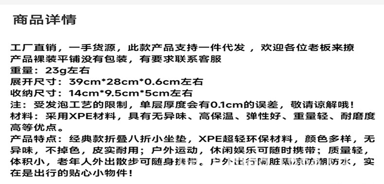 야외 접이식 방습 매트 피크닉 캠핑 폼 방수 야외용 싱글 만화 쿠션 뮤직 페스티벌