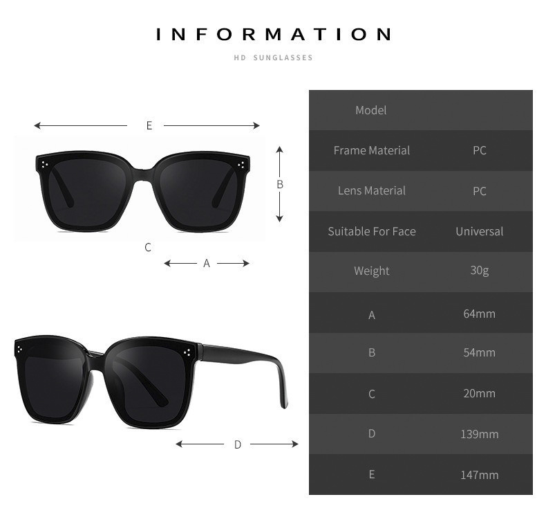 클래식 3 점 선글라스 남성 한국식 스퀘어 대형 프레임 빅 페이스 슬리밍 사이버 인기 편광 자외선 차단 선글라스 여성스토어 가기