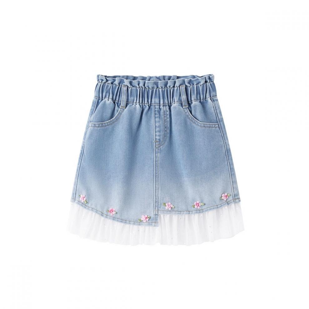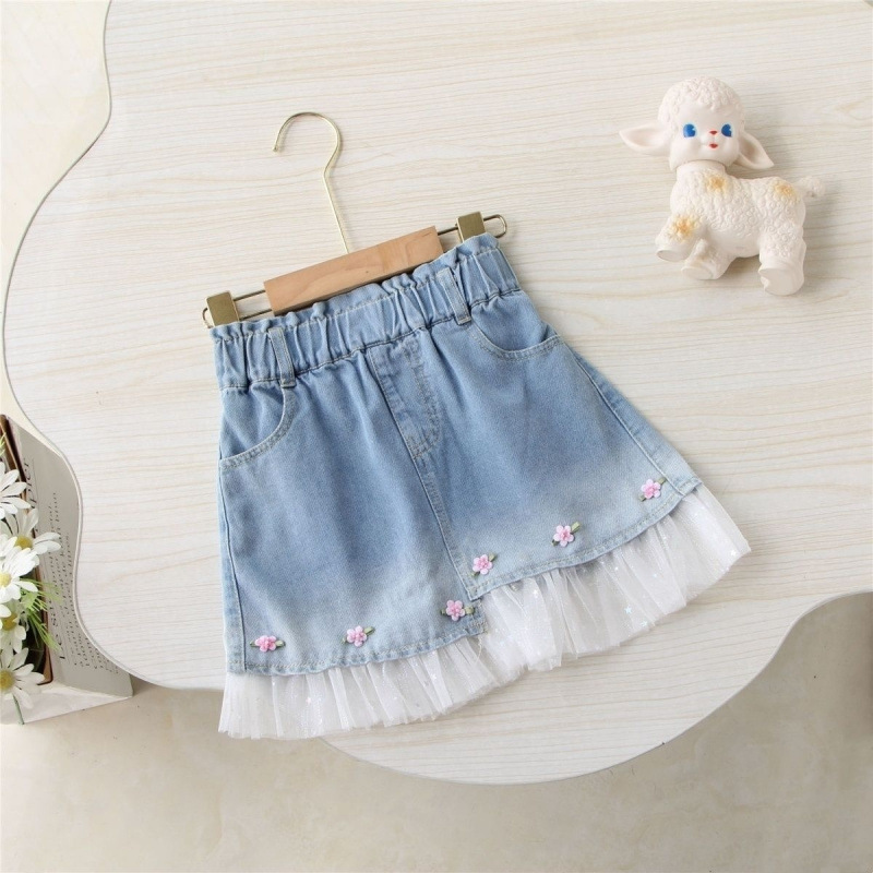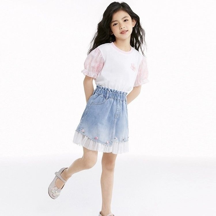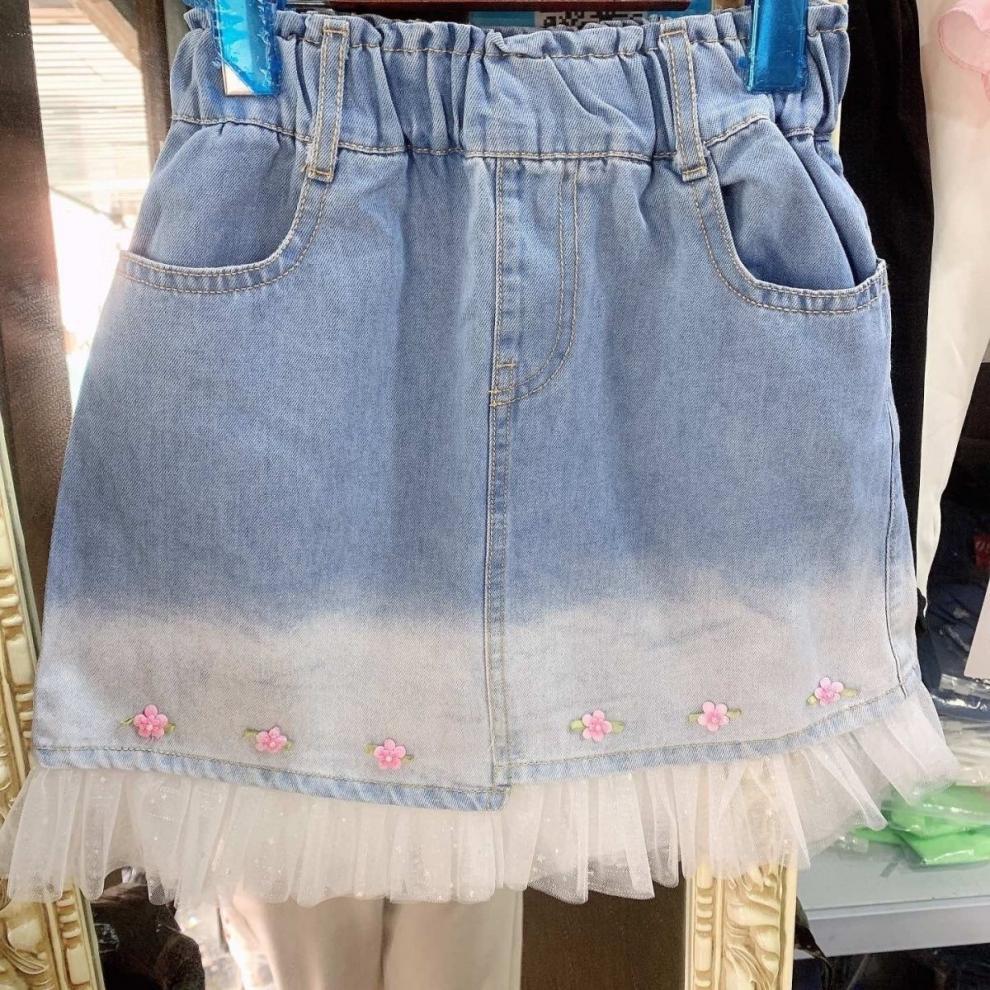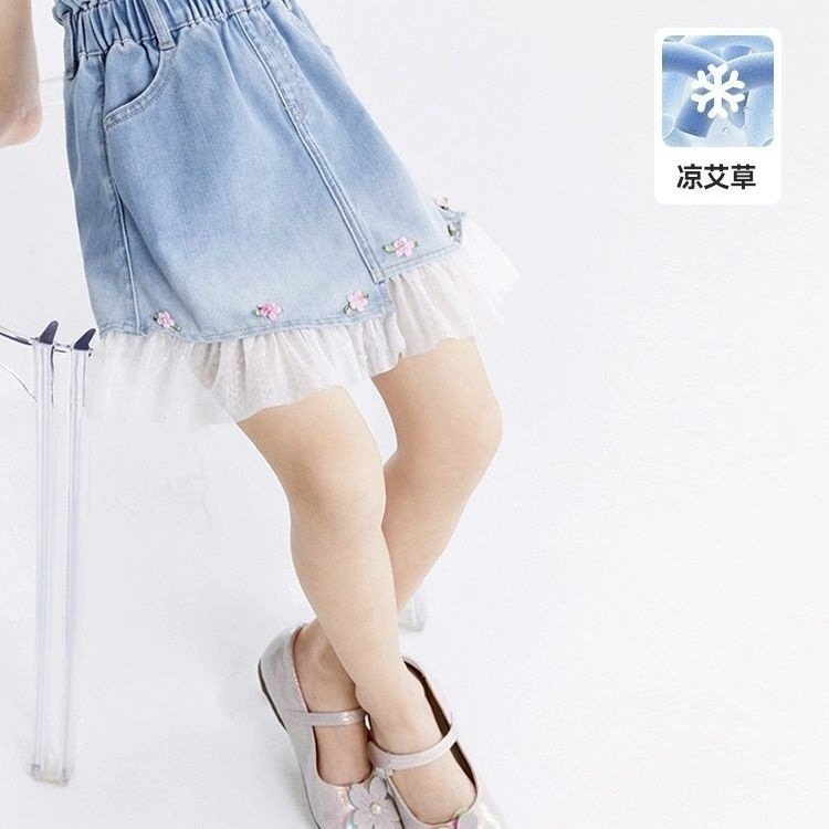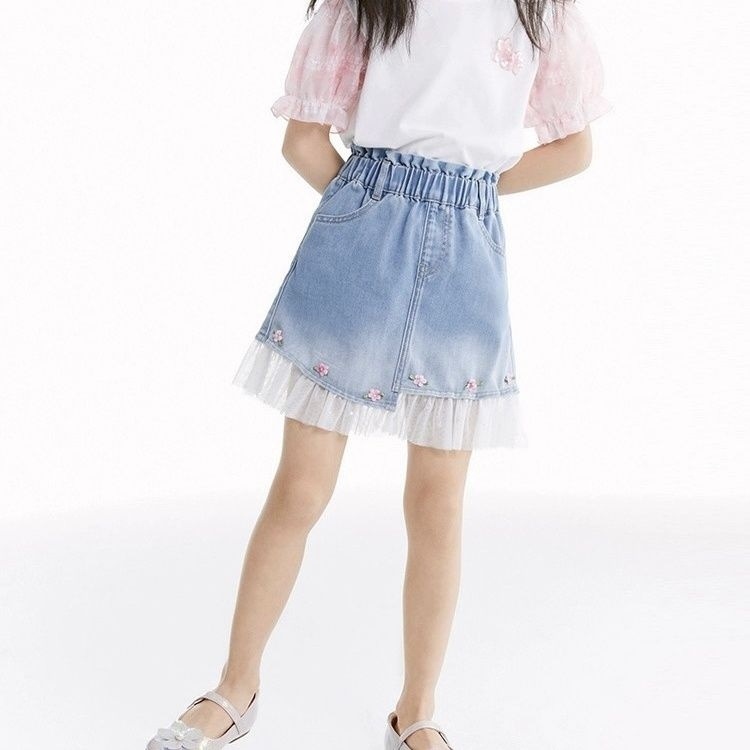 여자 여름 짧은 치마 2025 여름 새로운 스타일 어린이 스커트 접합 거즈 스커트 여자 데님 스커트스토어 가기