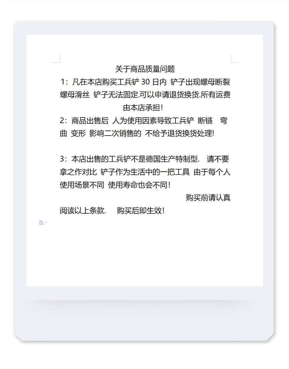 공병 삽 다기능 야외 망간강 독일 미니 낚시 자동차 탑재 군사 삽 공장 공급스토어 가기