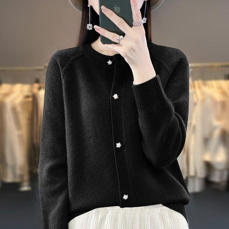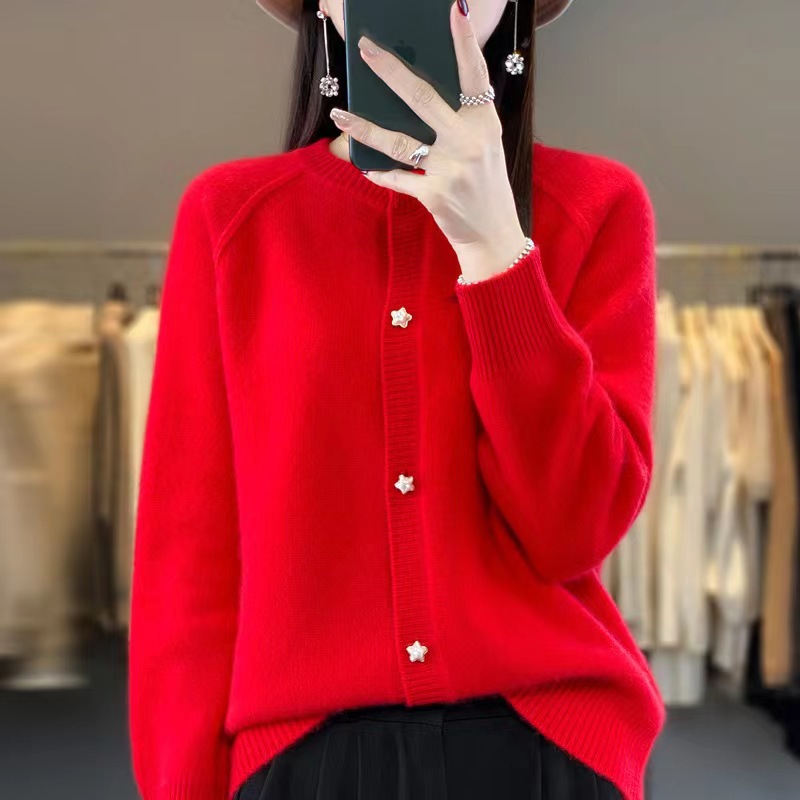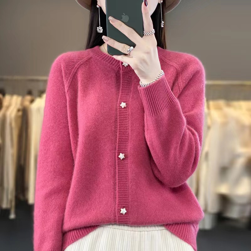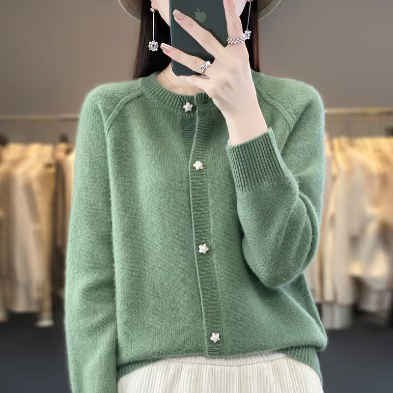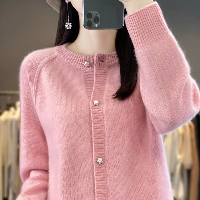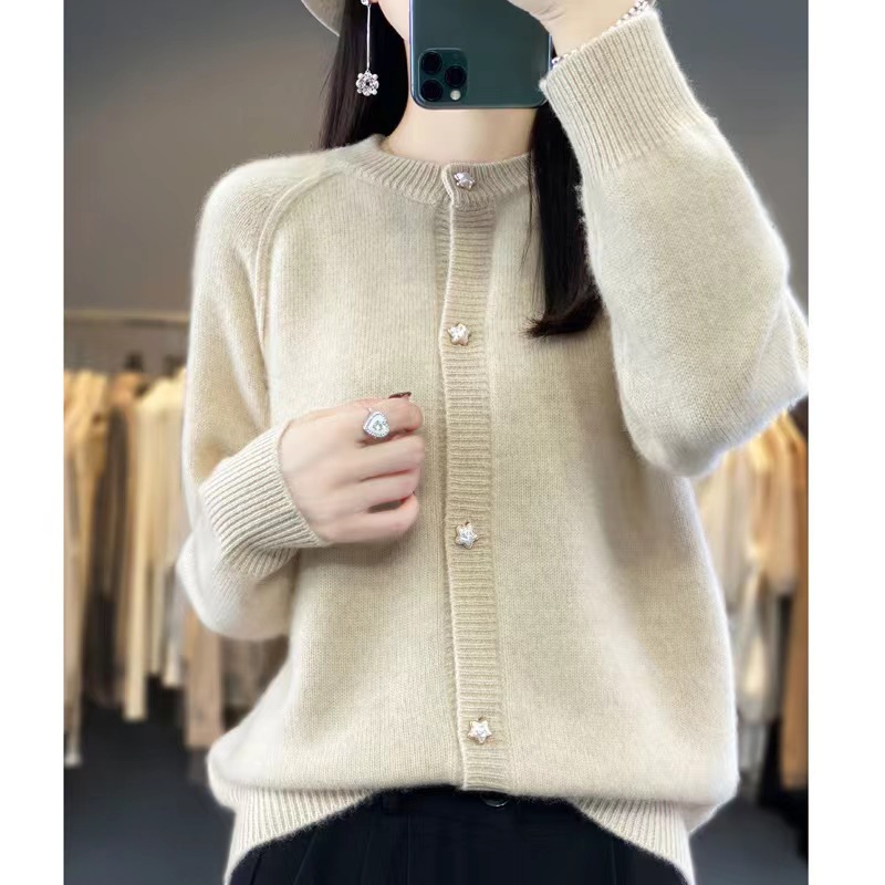 2025 봄, 가을 새로운 스타일 니트 카디건 라운드 넥 긴팔 풀오버 여성용 울 스웨터 루즈 플러스 사이즈 솔리드 컬러 자켓 탑스토어 가기