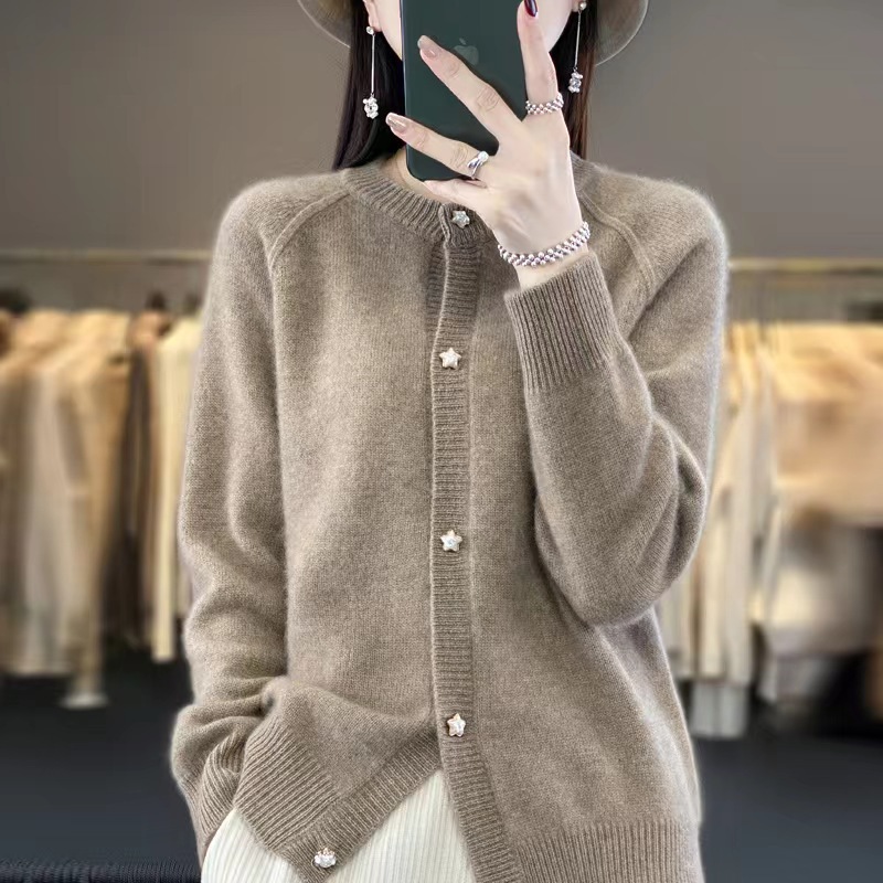 2025 봄, 가을 새로운 스타일 니트 카디건 라운드 넥 긴팔 풀오버 여성용 울 스웨터 루즈 플러스 사이즈 솔리드 컬러 자켓 탑