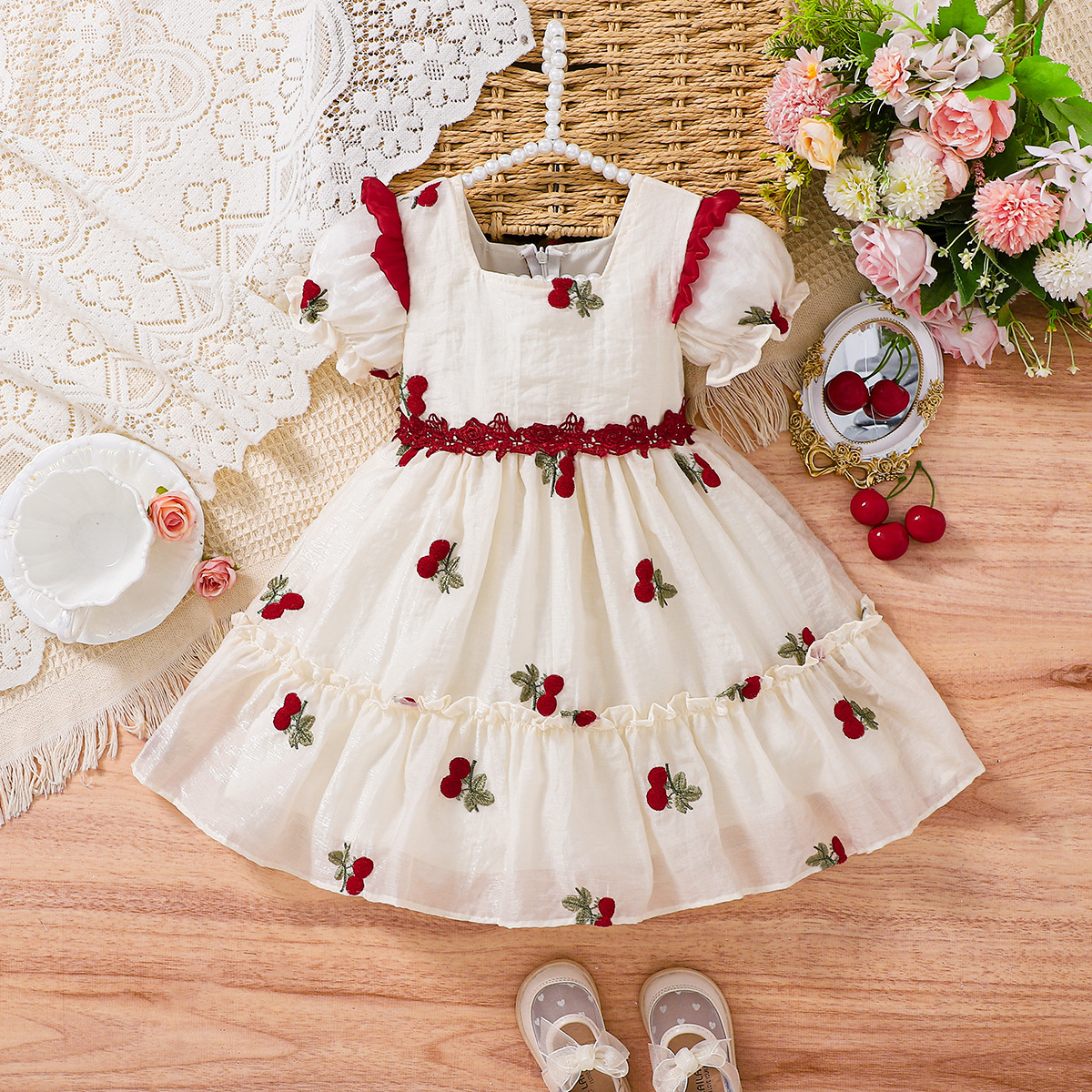 2025 여름 어린이 새로운 귀여운 수 놓은 드레스 소녀 메쉬 공주 드레스스토어 가기