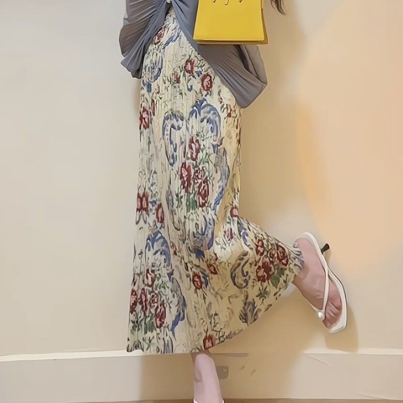 약간 뚱뚱한 여자 세트가있는 여름 원피스 슬림 그레이 주름 짧은 소매 상단 프린트 스커트 세트 착용스토어 가기