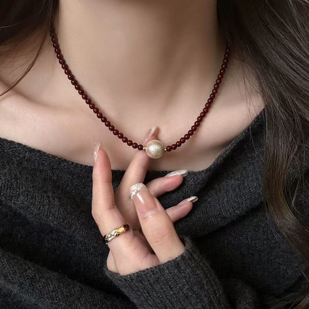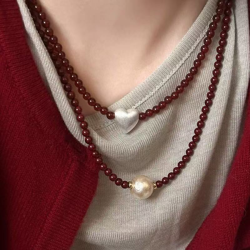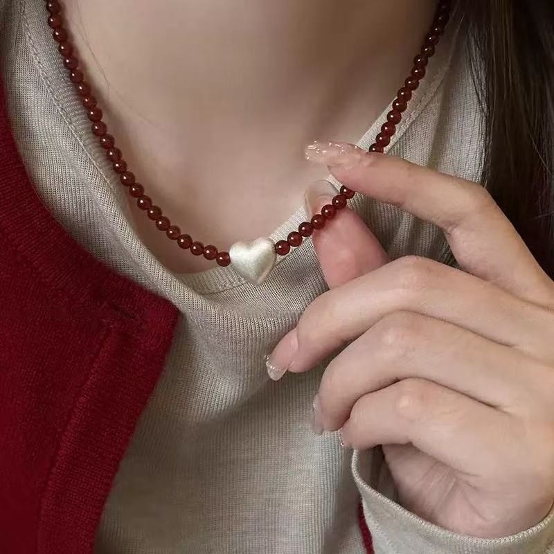 Ankora 레드 진주 페르시 러브 목걸이 여성 2024 새로운 스웨터 체인 라이트 럭셔리 디자인 목걸이 액세서리스토어 가기