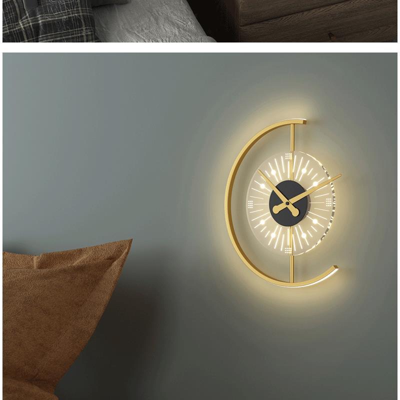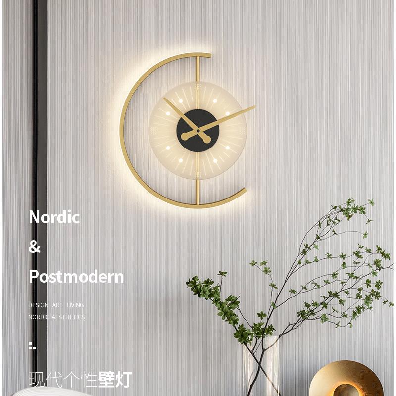 새로운 북유럽 시계 벽 램프 거실 배경 벽 침실 침실 현대 간단한 인터넷 연예인 장식 램프