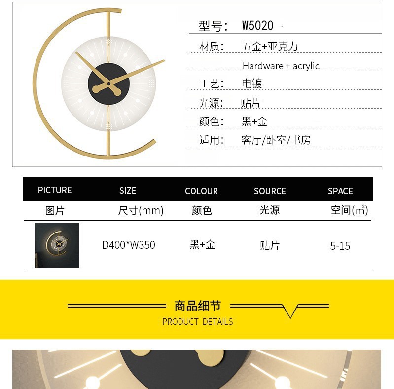 새로운 북유럽 시계 벽 램프 거실 배경 벽 침실 침실 현대 간단한 인터넷 연예인 장식 램프스토어 가기