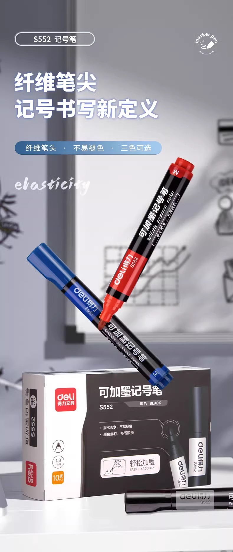델리 마커 S552 는 잉크 큰 머리 유성 마커 펜 10 PCs/상자 두꺼운 머리 표현 쓰기 펜을 추가 할 수 있습니다