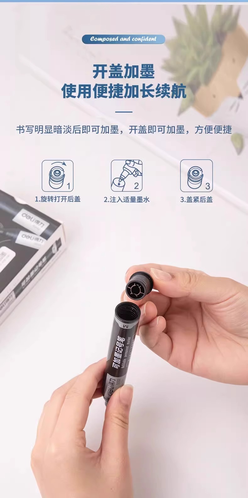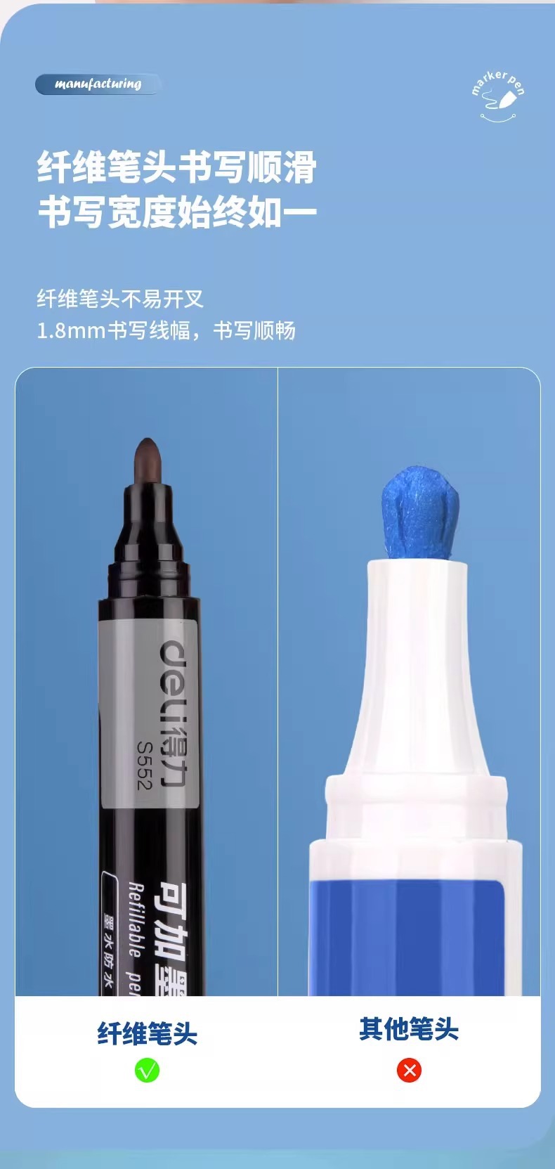 델리 마커 S552 는 잉크 큰 머리 유성 마커 펜 10 PCs/상자 두꺼운 머리 표현 쓰기 펜을 추가 할 수 있습니다스토어 가기