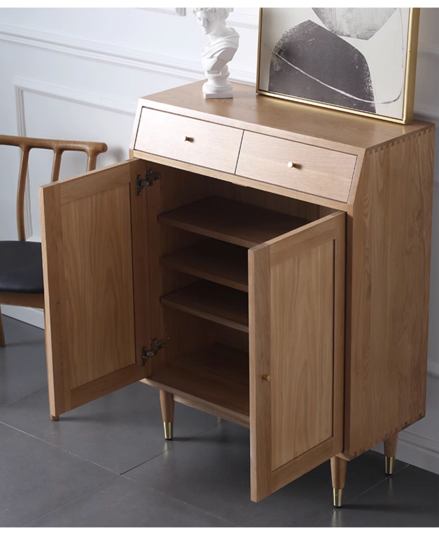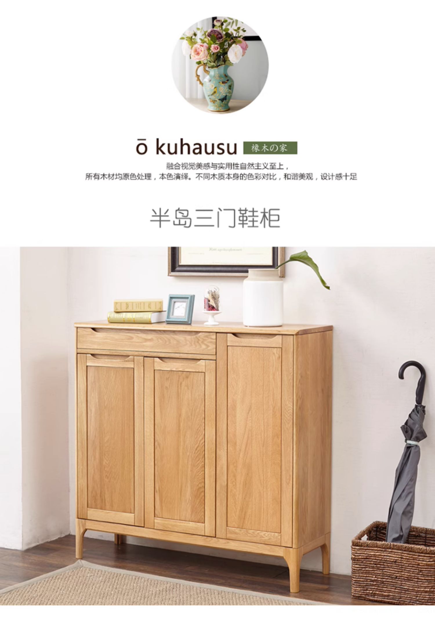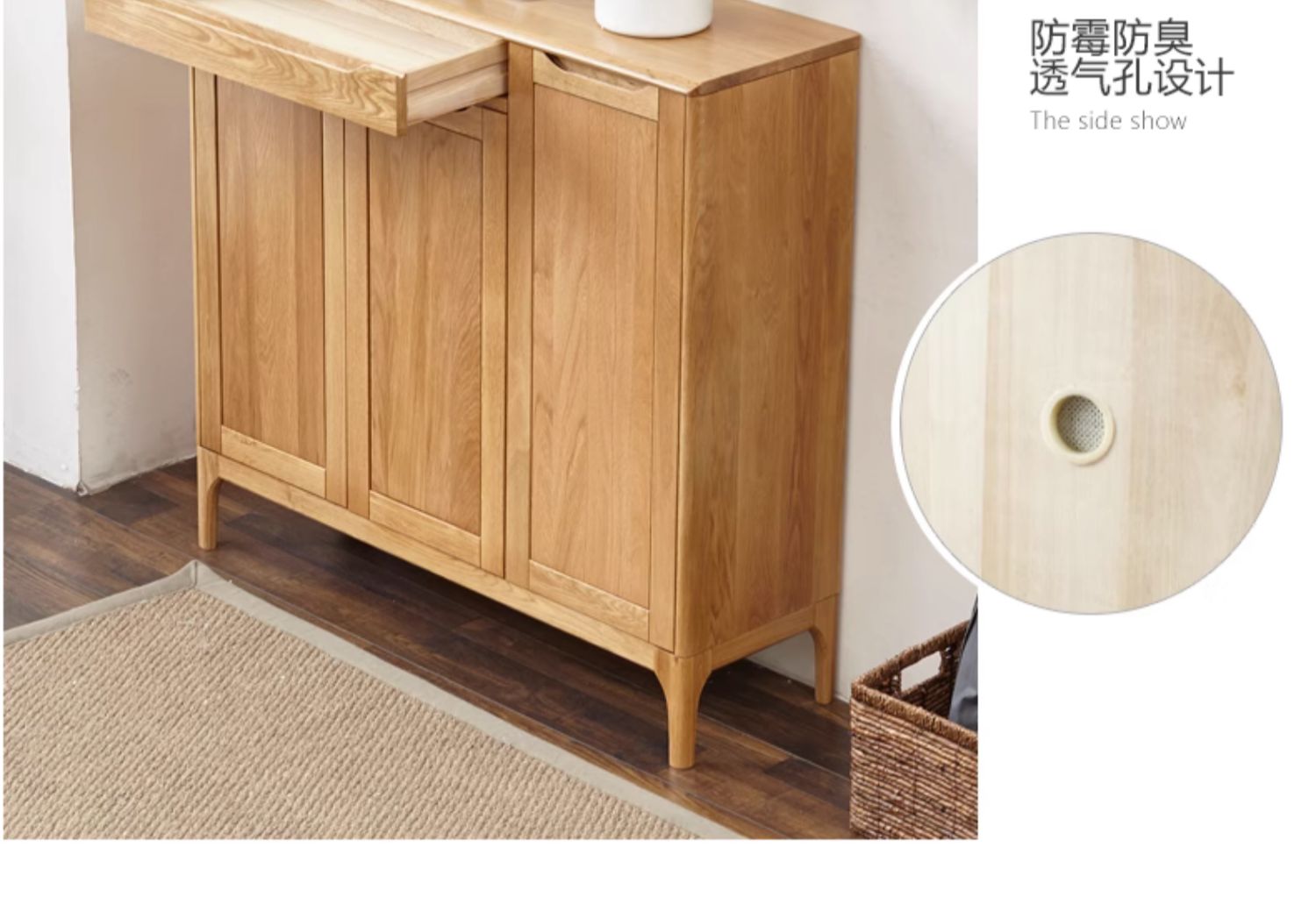 북유럽 모든 단단한 나무 신발 캐비닛 오크 간단한 현대 작은 아파트 입구 캐비닛 로그 신발 가정용 문