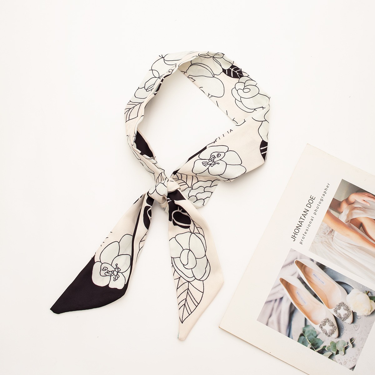 넥타이 팩 긴 스카프 여름 작은 샤넬 스타일 스카프 양면 웨이브 도트 스퀘어 스카프 고급 센스 시뮬레이션 리본 스카프