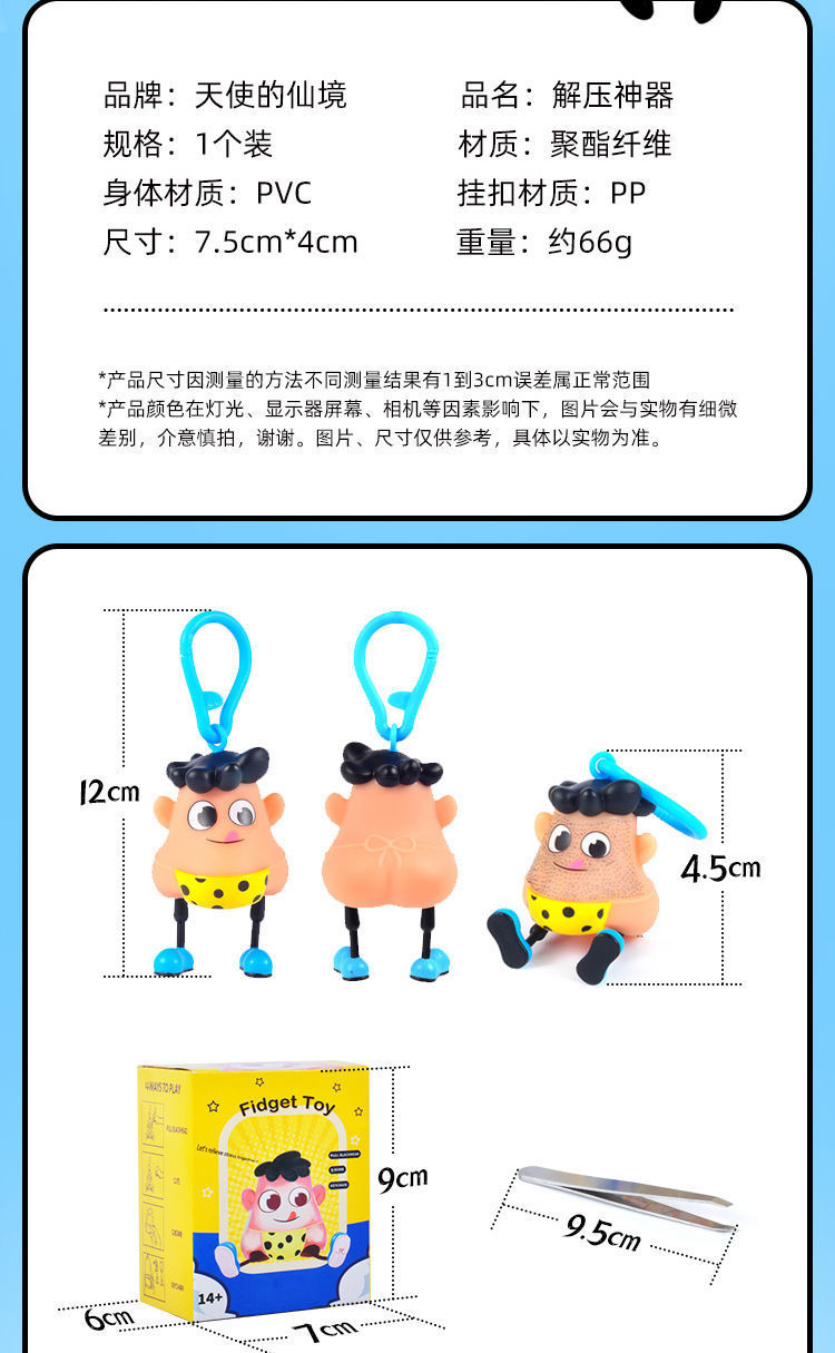 풀링 마오 창조적 인 풀링 블랙 헤드 압축 해체 완구 블랙 헤드 당기기 수염 재미 키 체인 펜던트