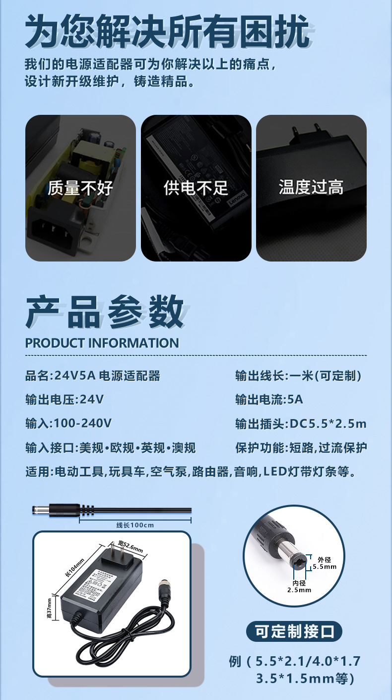24V5A 전원 어댑터 방수 플러그 정수기 부스터 펌프 가열 막대 물리 치료 장비 24V 전원 어댑터스토어 가기