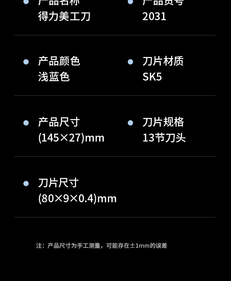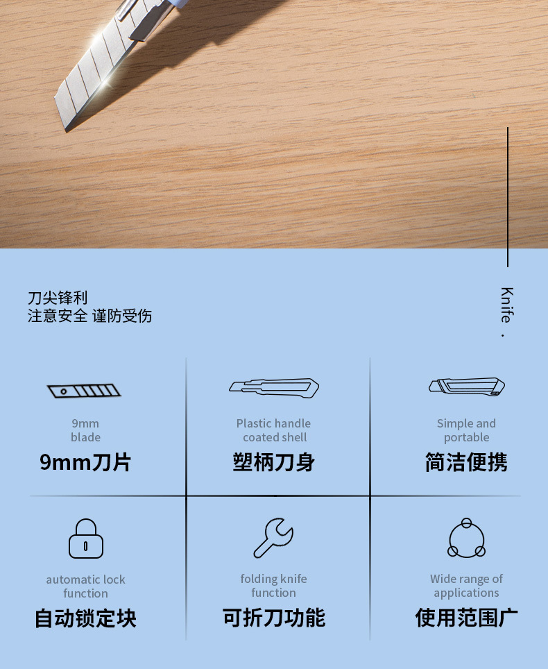 델리 아트 나이프 2031 익스프레스 포장 나이프 하이 퀄리티 작은 사무실 아트 나이프 피트 9mm 블레이드 도매