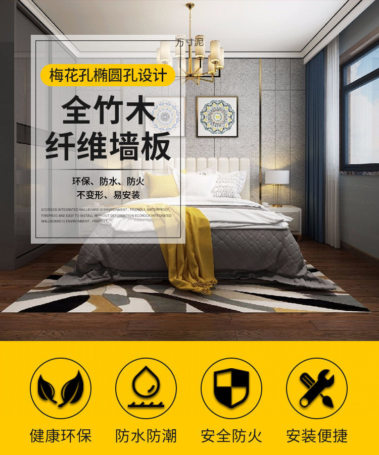 대나무 섬유 통합 벽 패널 장식 자체 설치 빠른 설치 벽 천장 벽 보호 패널 버클 플레이트 홈 실내 도매스토어 가기