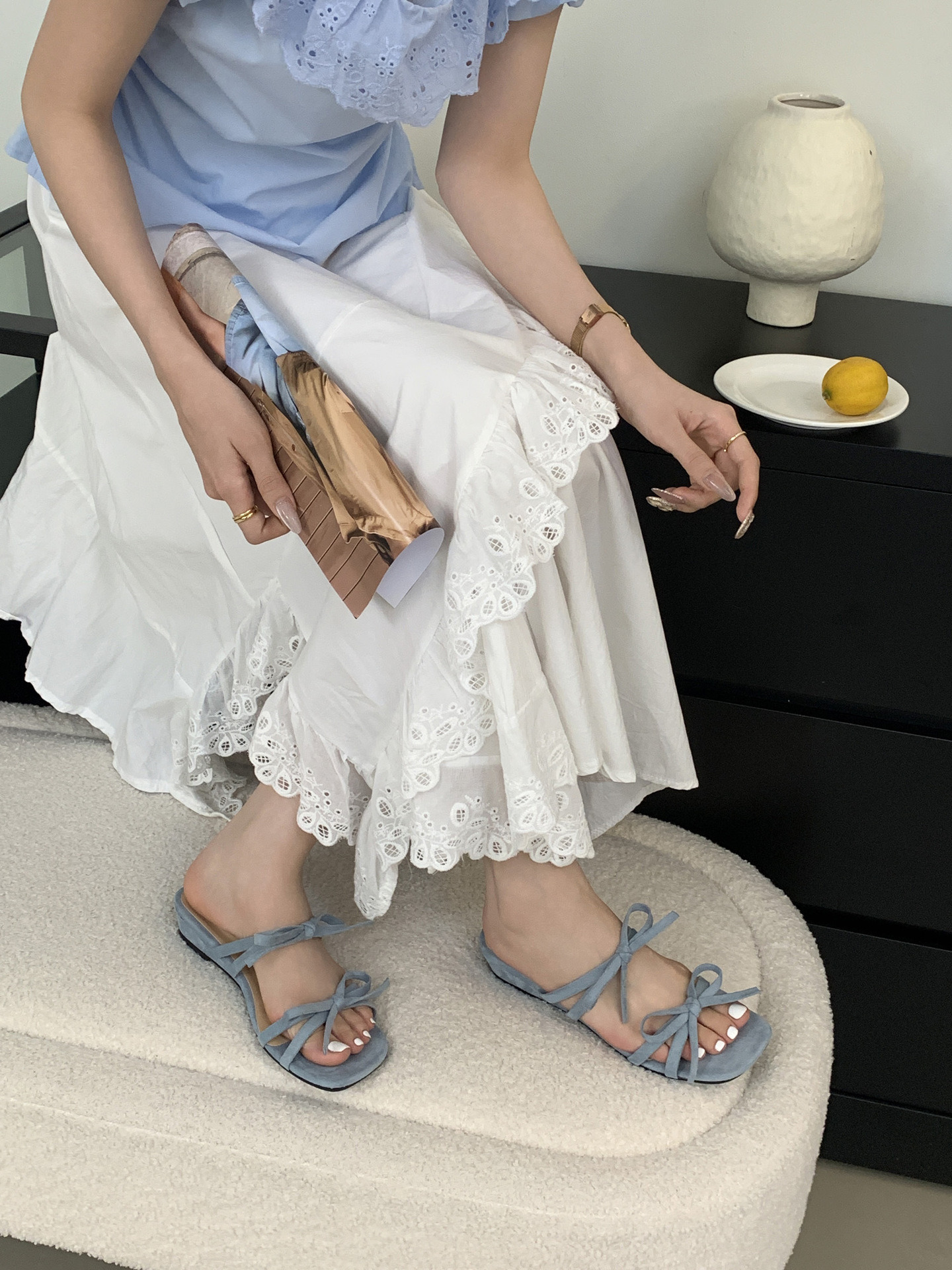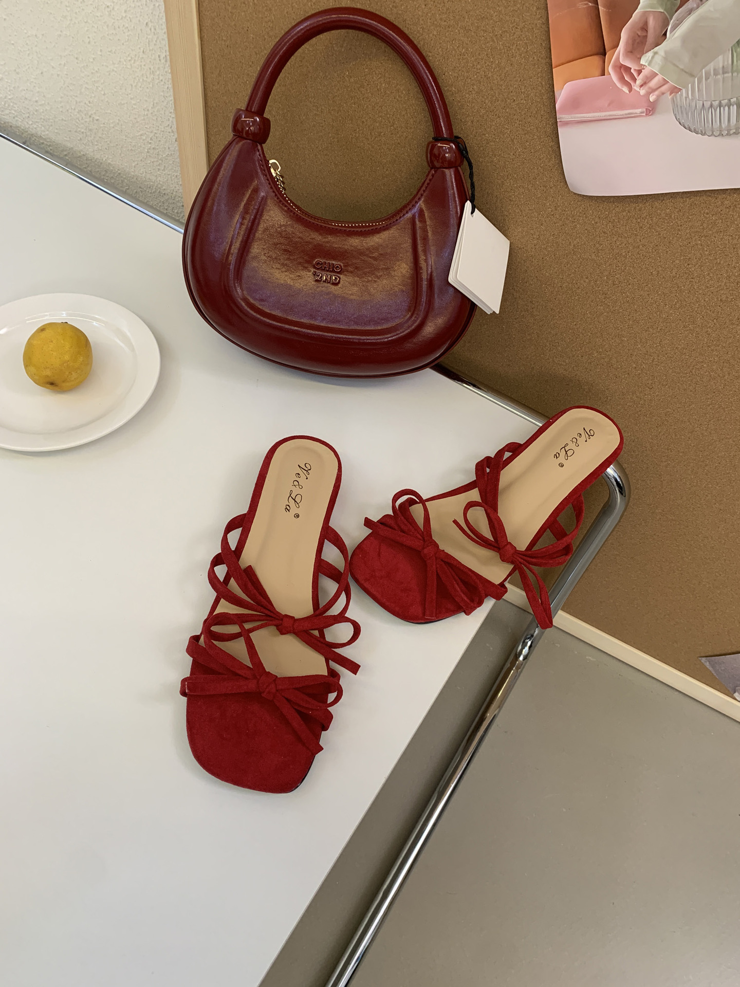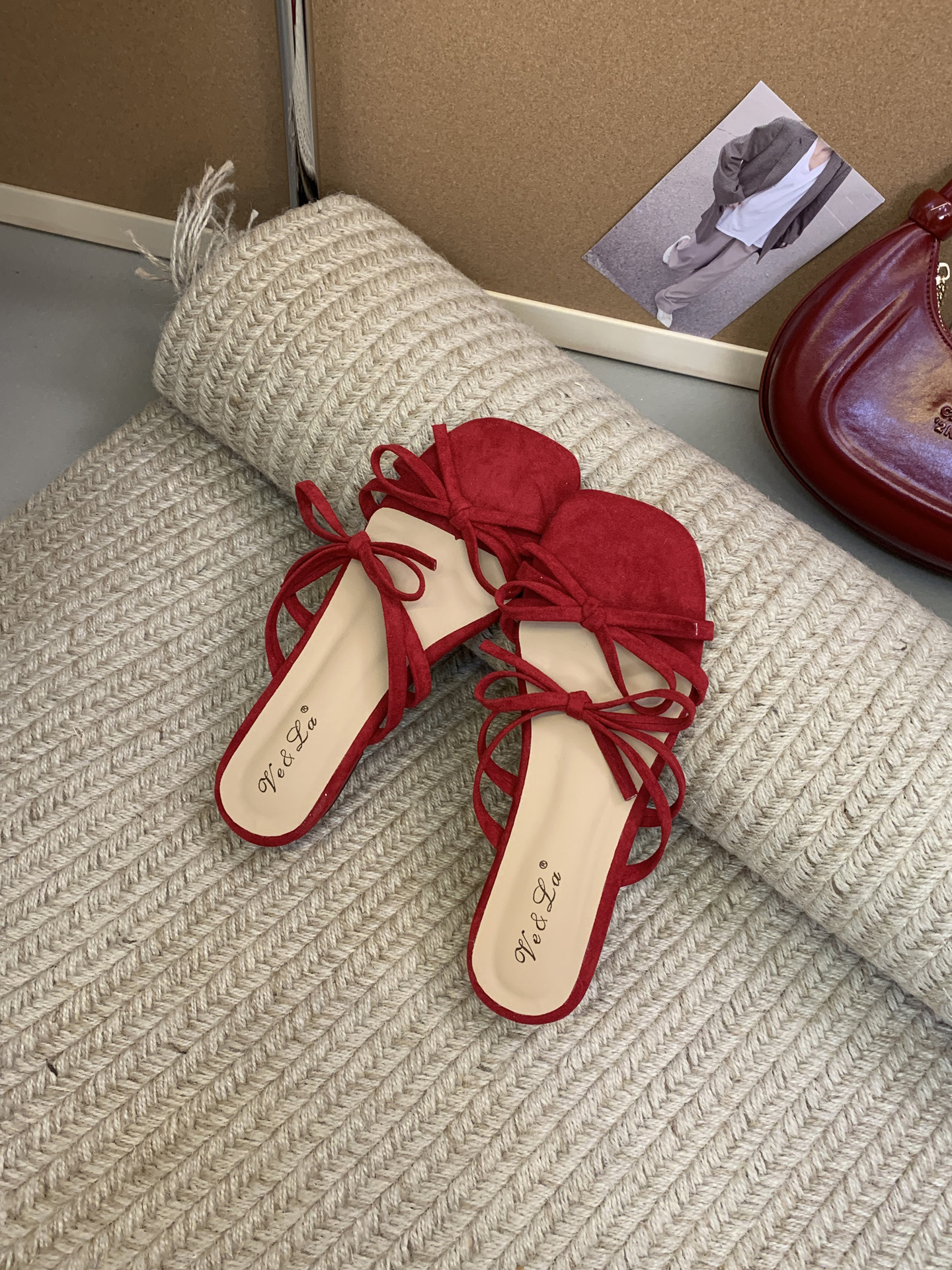 여성용 슬리퍼 여름 프렌치 젠틀 스타일 보우 요정 샌들 아우터웨어 웨지 비치 샌들