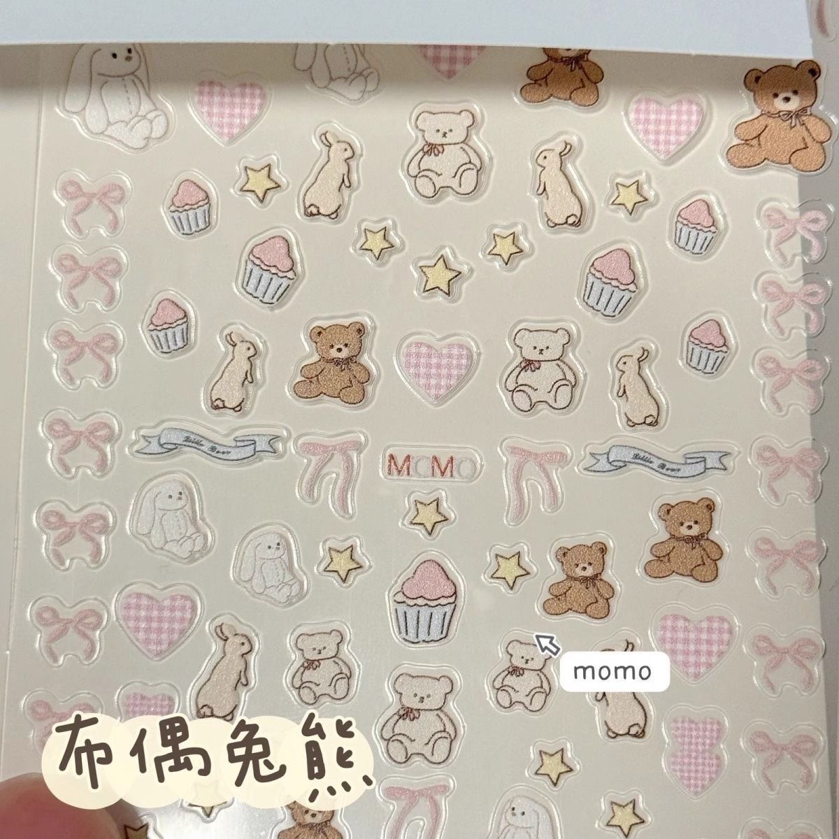 굿나잇 제니 래그돌 토끼 곰 네일 아트 스티커 ipad 양각 소녀 로리타 공주 ins bow스토어 가기