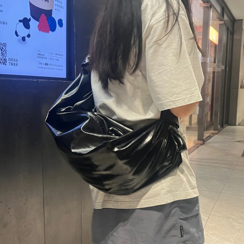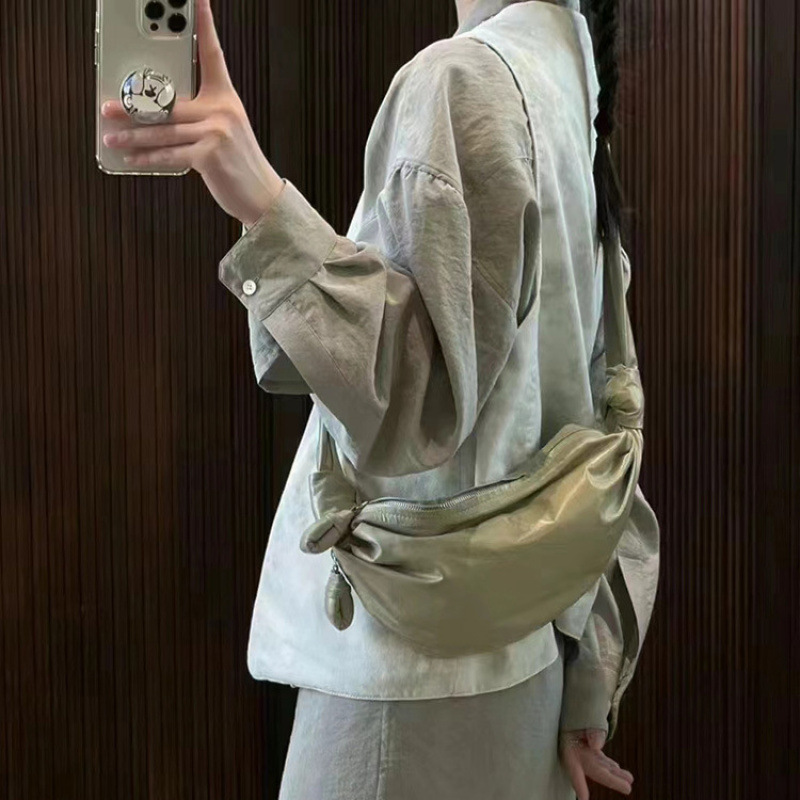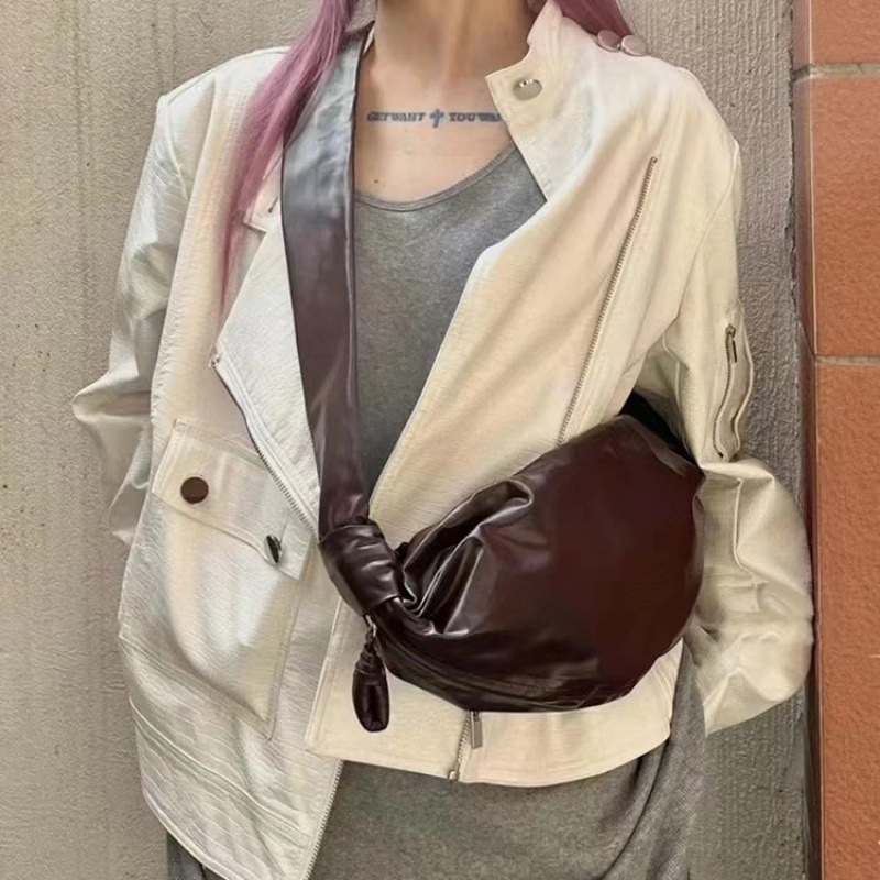 2024 년 새로운 틈새 단일 어깨 크로스 바디 백은 만두 백을 칭찬 할 수있는 대형 크래프트 종이 러플
