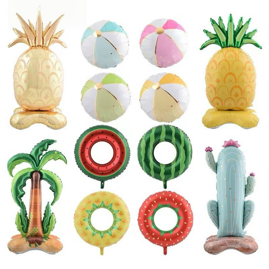 국경 간 여름 서 선인장 파인애플 알루미늄 필름 풍선 모양 코코넛 나무 수영 서클 비치 파티 장식 풍선