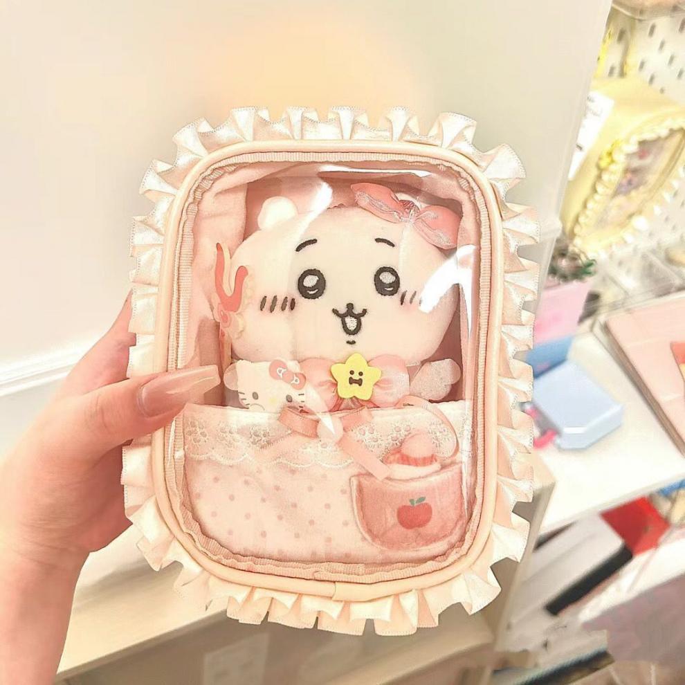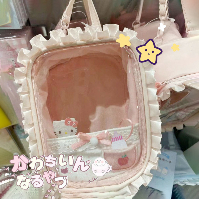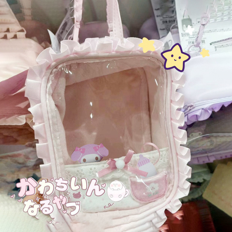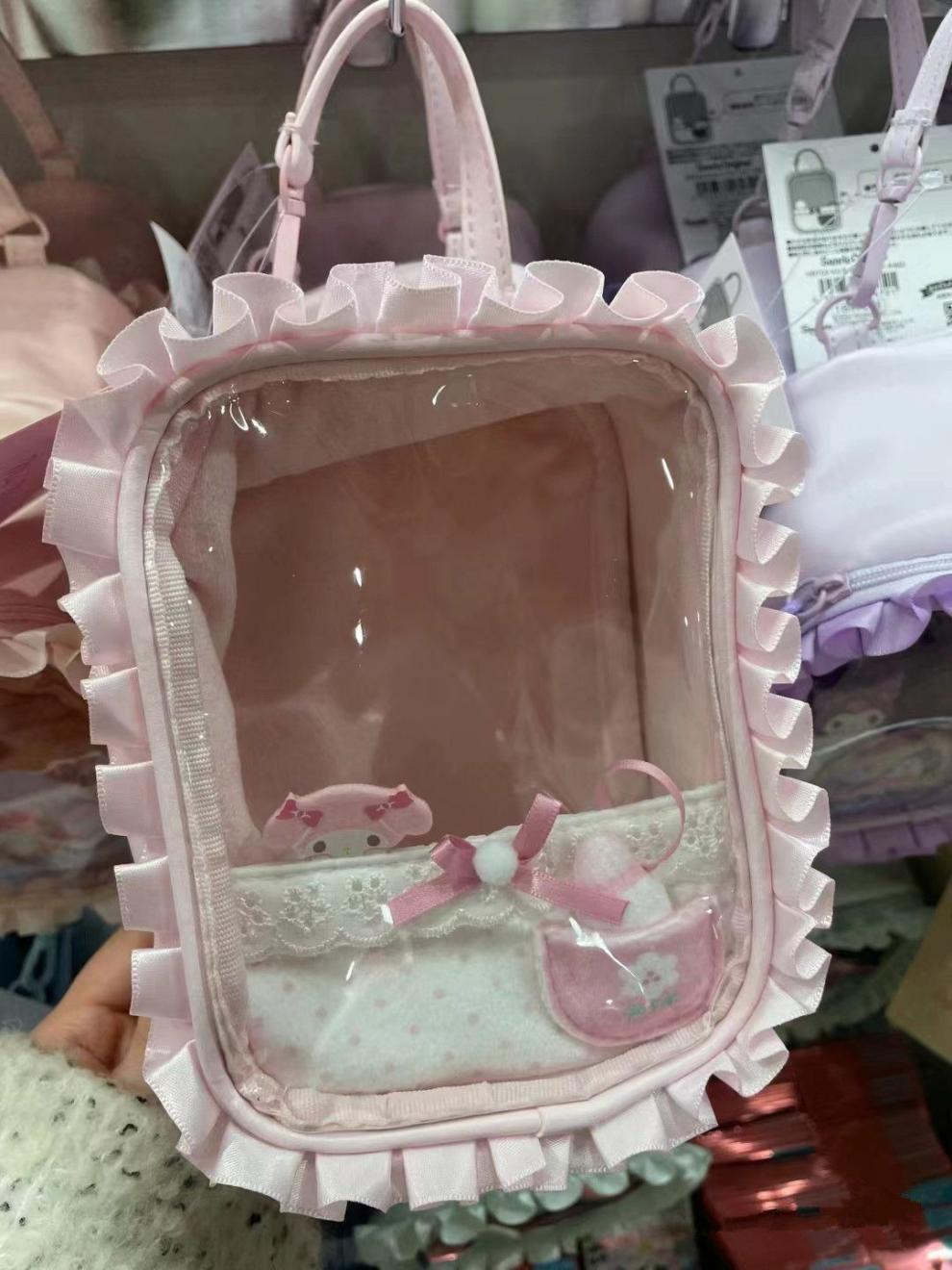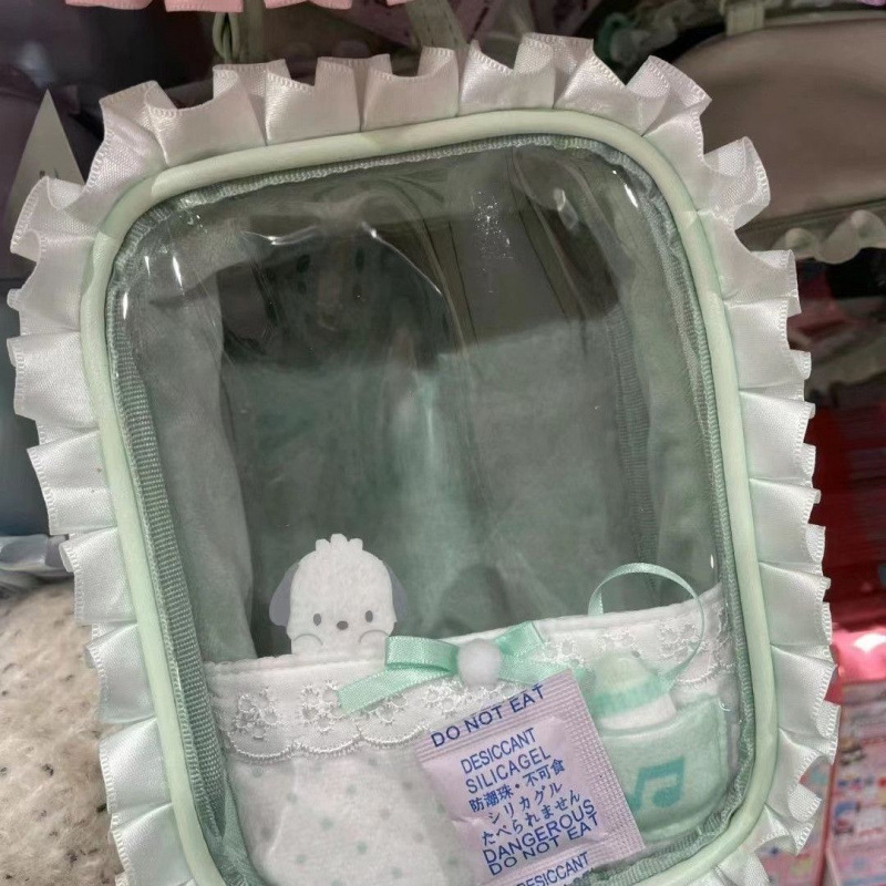 만화 산리오 귀여운 투명 레이스 핸드백 아기 가방 통증 가방 달콤한 저장 가방 디스플레이 DIY 방진 가방스토어 가기