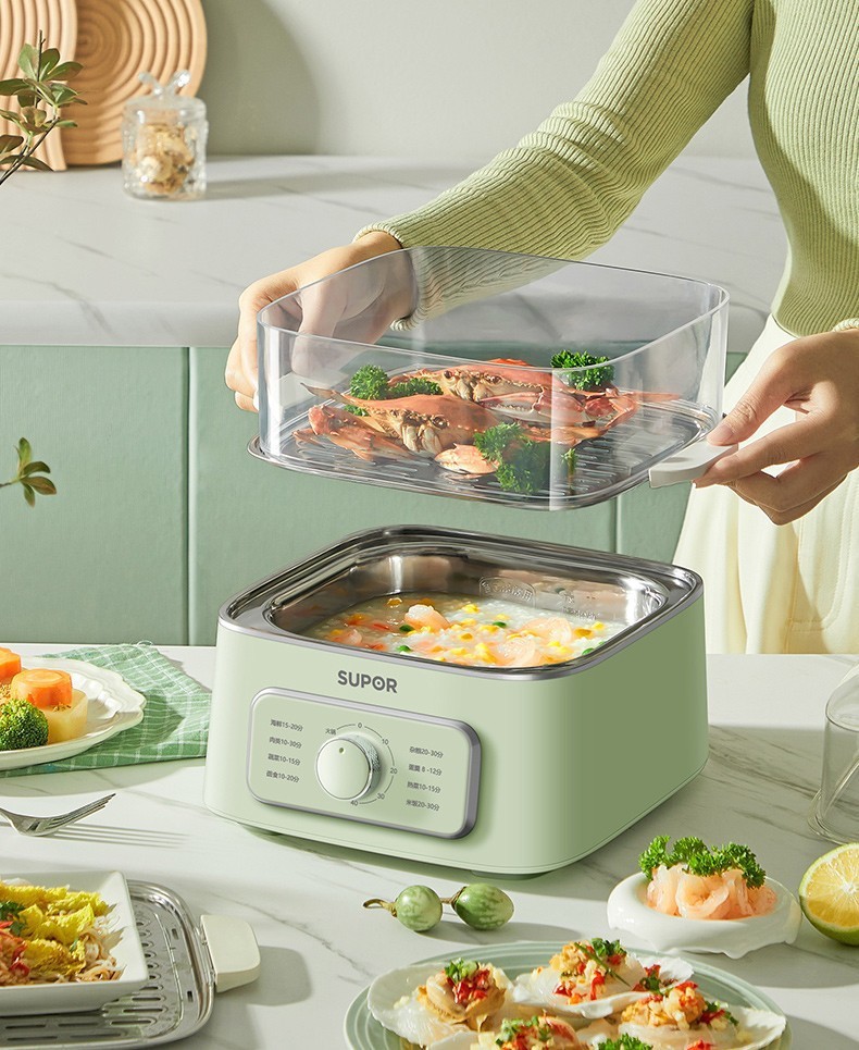 Suppor 전기 증기선 9L 가정용 대용량 다기능 냄비 시각적 3 층 증기선 스테인레스 스틸 증기선