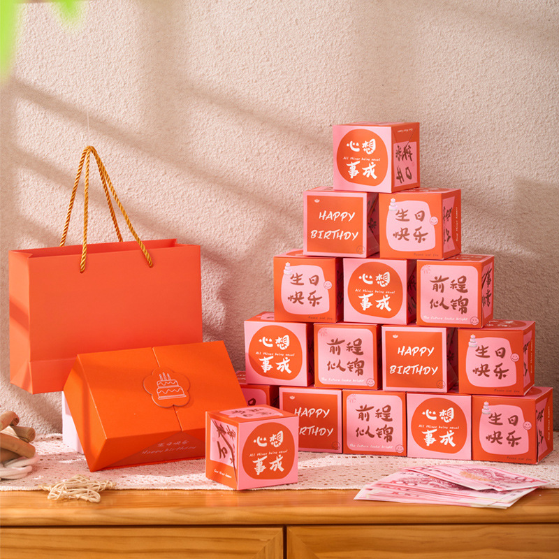 • 빨간색 생일 축하 - 23개의 튀는 상자 + 절묘한 이중 개방형 선물 상자 선물 가방