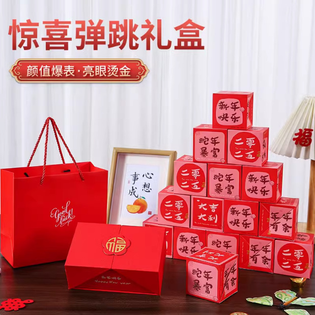 • 새해 복 많이 받으세요 - 바운싱 박스 18개 + 정교한 이중 개봉 선물 상자 선물 가방