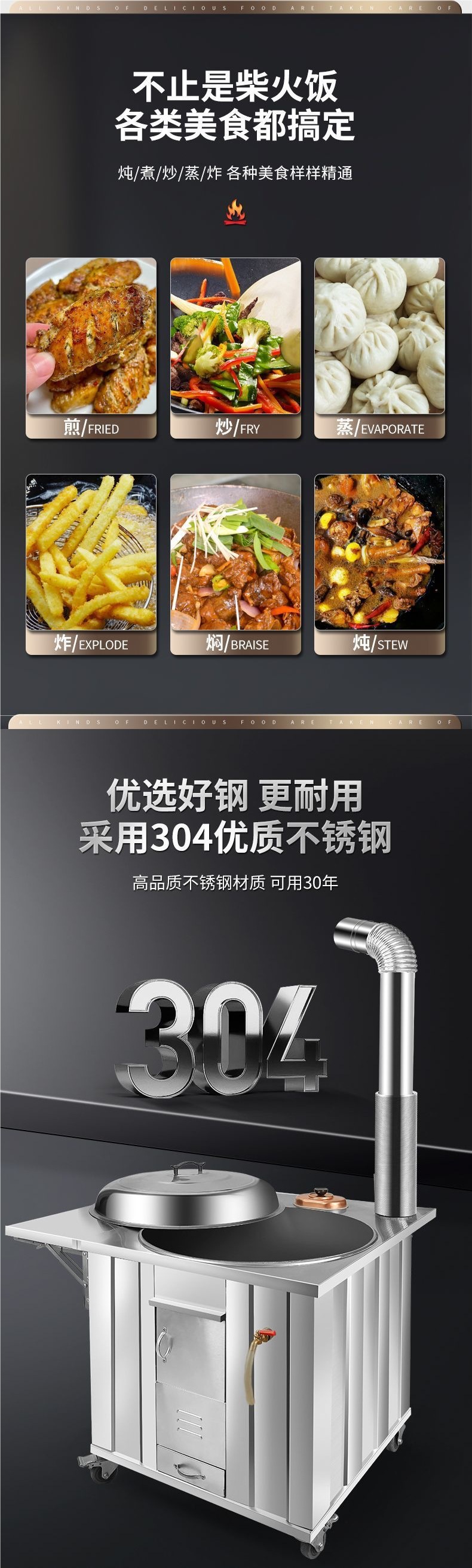 llH304 스테인레스 스틸 스토브 두꺼운 농촌 장작 스토브 가정용 장작 이동식 실내 무연 스토브스토어 가기