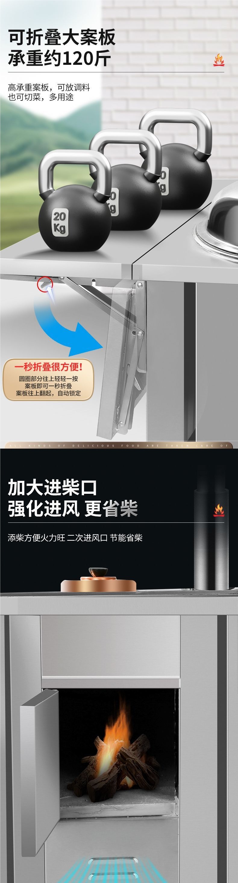 • [기계 전체의 2배 두께] 64cm 싱글 스토브 + 접이식 보드 - 국가 표준 304 강화 - 30년 보증