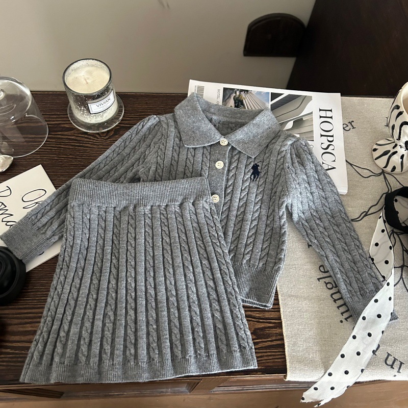 재고정리, 환불불가, 교환불가 [합리주문] 여아스웨터수트, 컬리지스타일 니트+가디건스커트