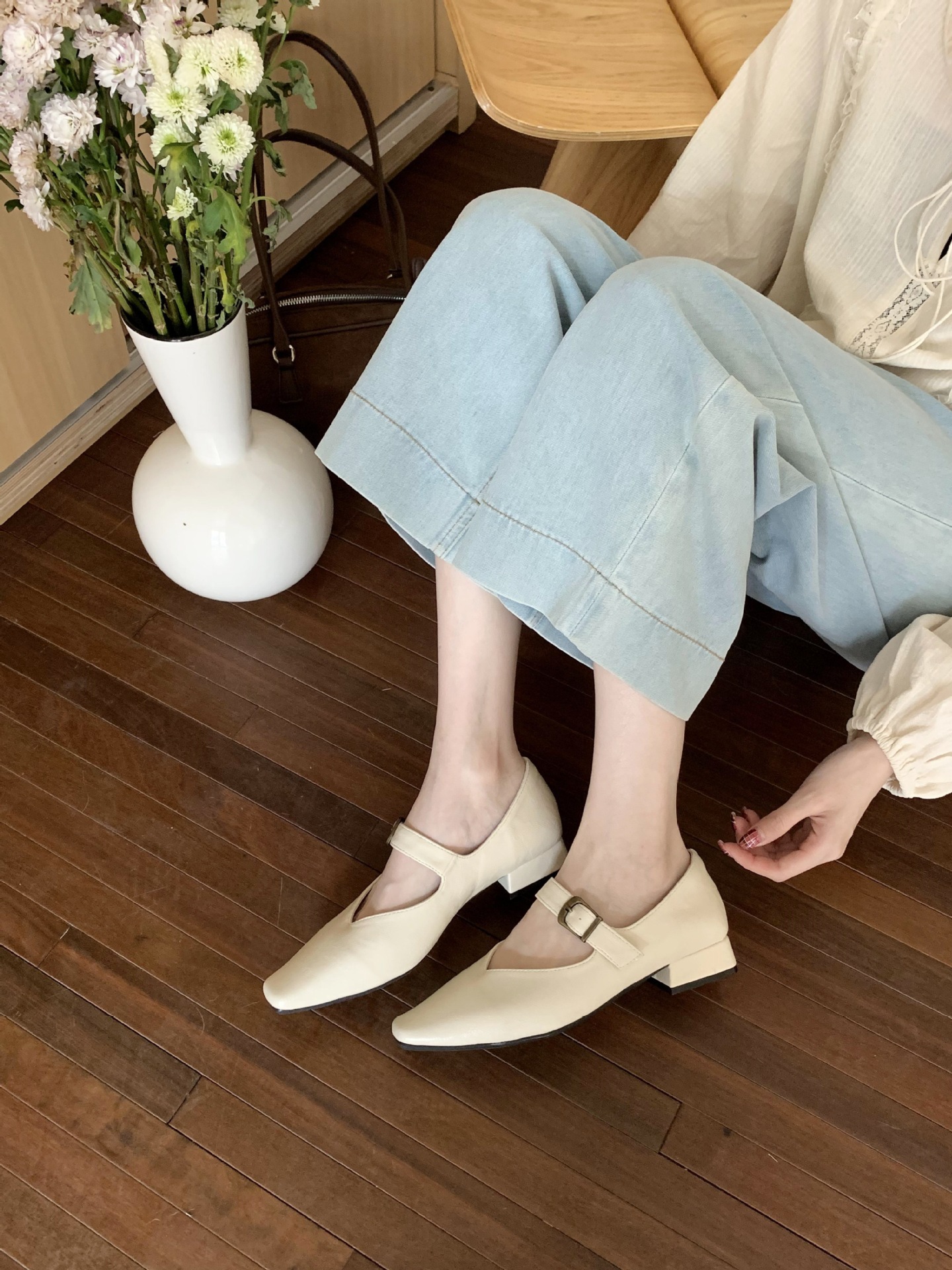 여성을위한 레트로 두꺼운 굽 플랫 메리 제인 신발 2025 봄 새로운 프랑스 스타일 작은 사각형 발가락 중간 굽 신발스토어 가기