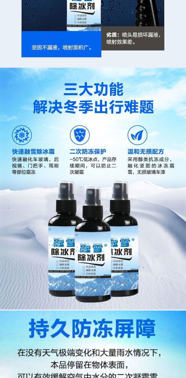 자동차 제설제 및 제빙제, 겨울철 얼음 제거 및 제빙제, 자동차 유리 동결 방지제, 자동차 유리 해동 및 제설 스프레이