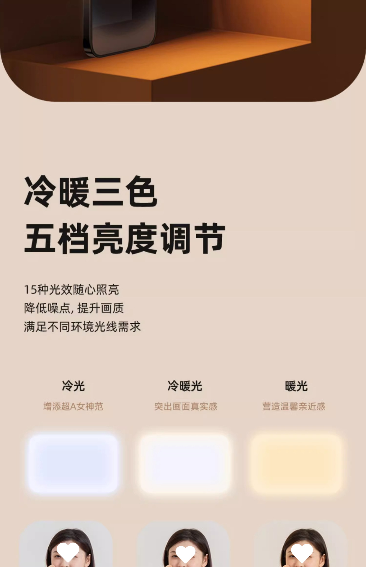 • 전체 화면 표준 모델 - 흰색 [450°회전 √ 삼색조명 √ 부드러운 빛이 눈부시지 않음]