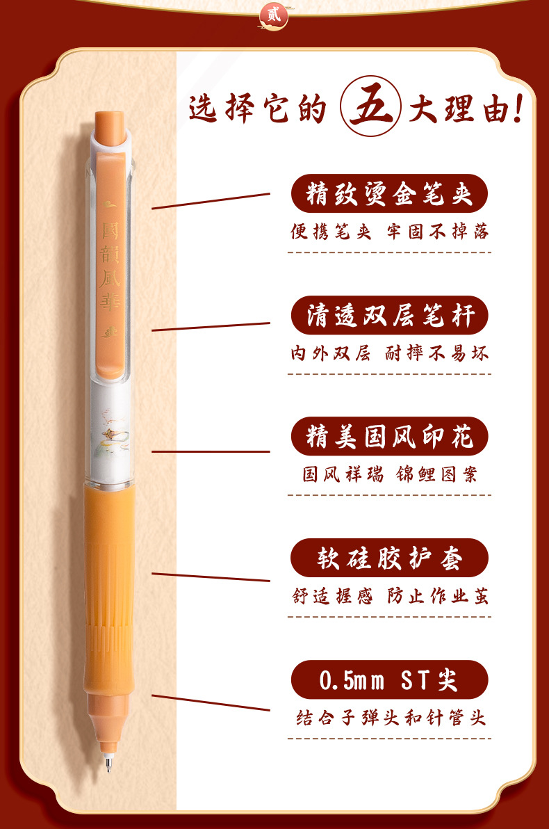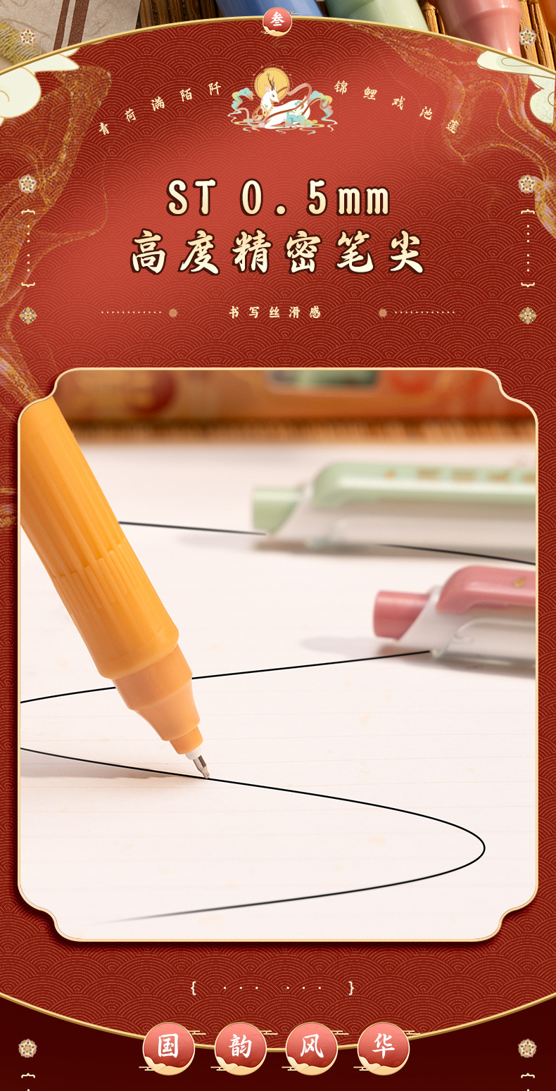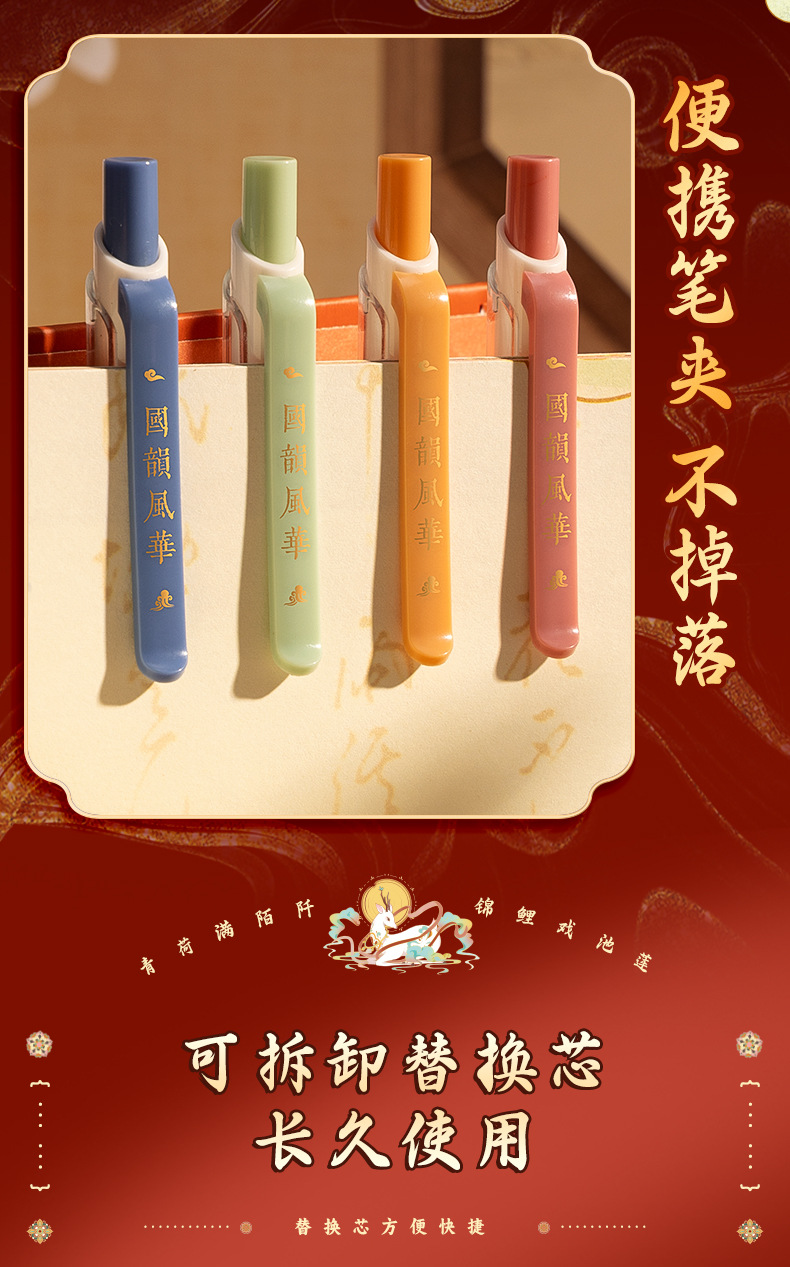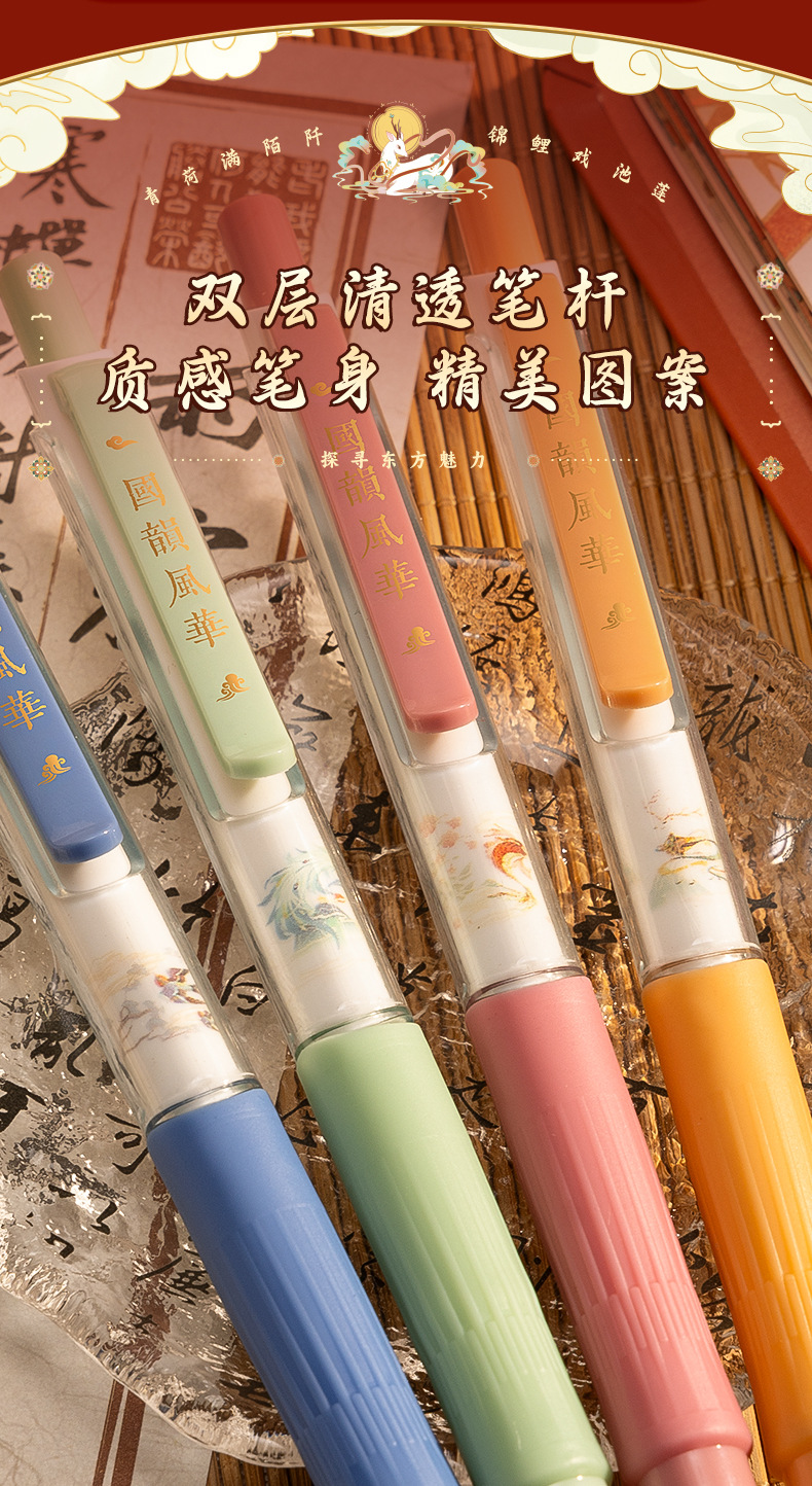 새로운 Guofeng 젤 펜 높은 색상 가치 학생 특수 프레스 펜 ST 브러시 사인 펜 실리콘 시트 빠른 건조 펜