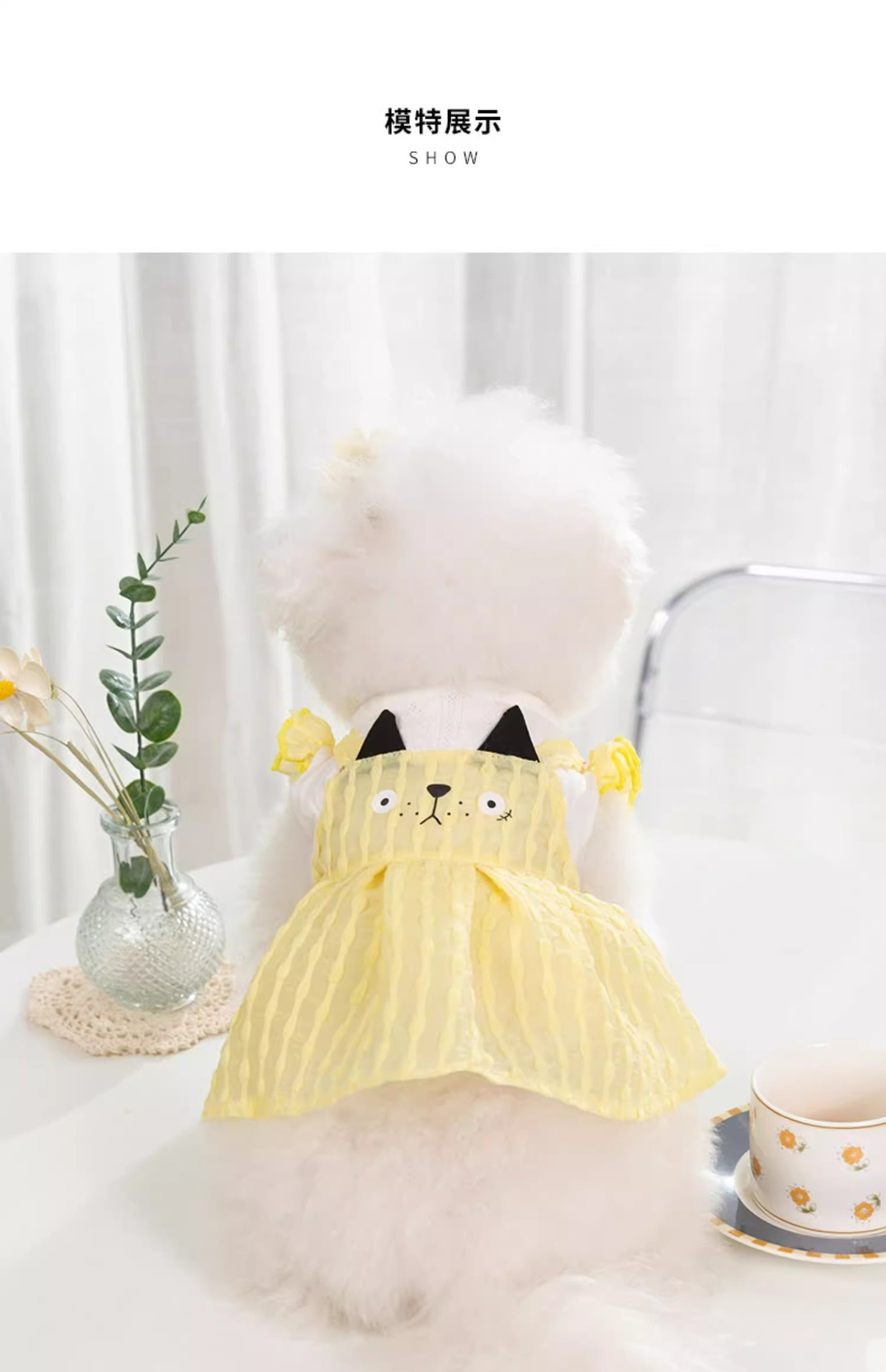 강아지 드레스 봄과 여름 입체 고양이 격자 무늬 스커트 테디 비숑 중소형 개와 고양이 애완 동물 옷
