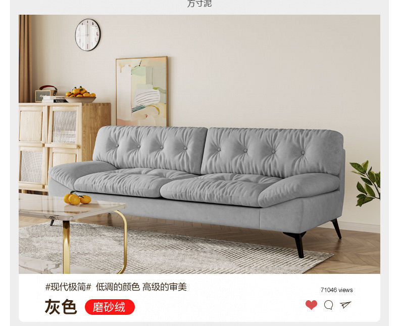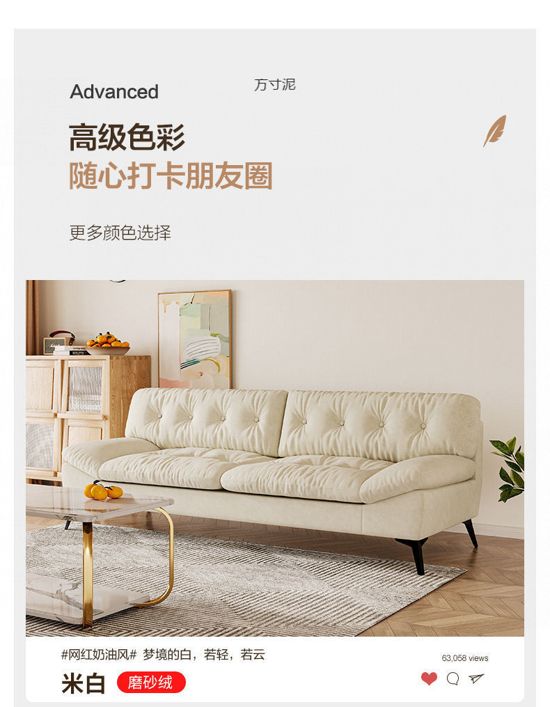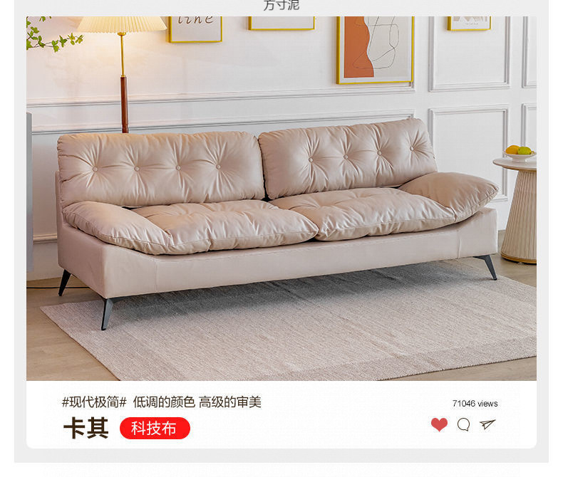 소형 아파트용 소파, 3인용 직선형 고양이 스크래치 천 아파트, 옷가게 소파, 인터넷 연예인 클라우드 소파 도매스토어 가기