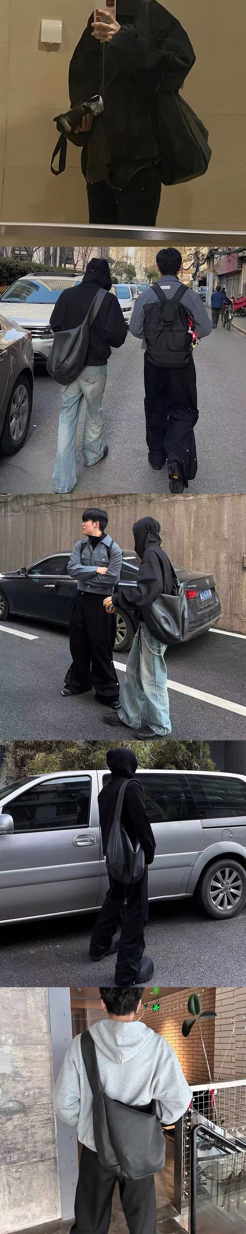复古ins包休闲斜挎包大容量单肩托特水洗斑驳斜挎打褶皮质流浪包스토어 가기