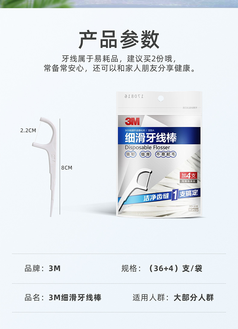 3M 치실스틱, 미세하고 부드러운 치실, 치아간 관리, 치석제거 및 잇몸개선, 치아청소 및 보호용 치실 40개