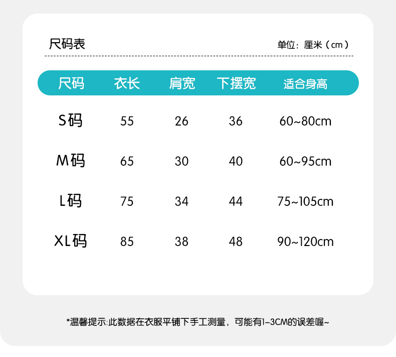 • S 사이즈는 신장 55-75cm에 적합합니다.