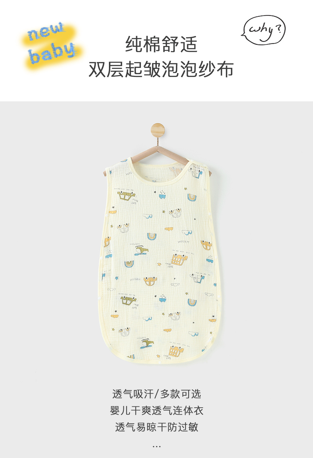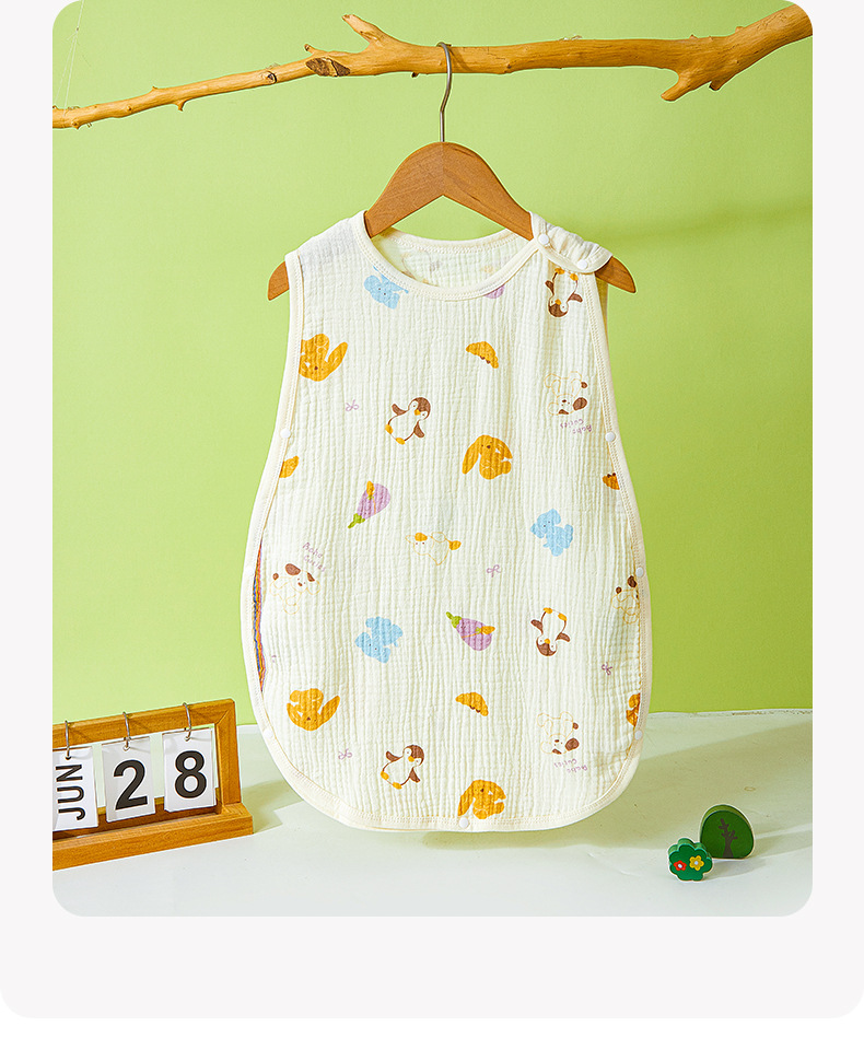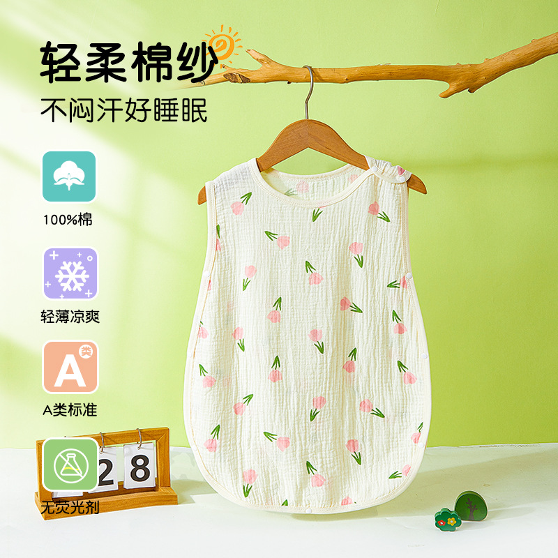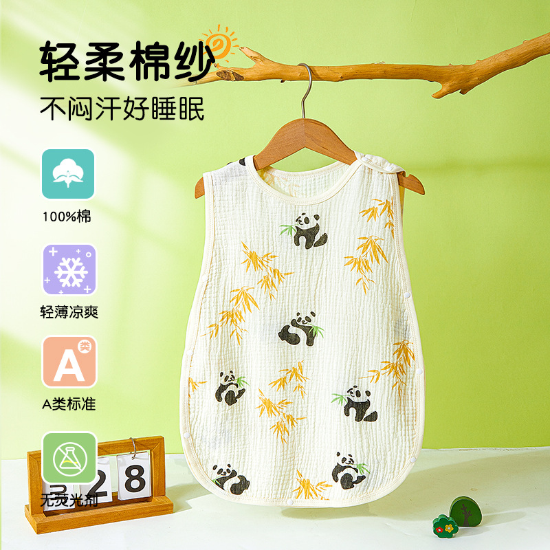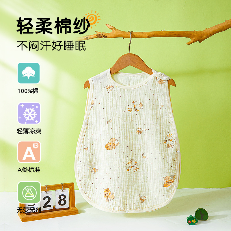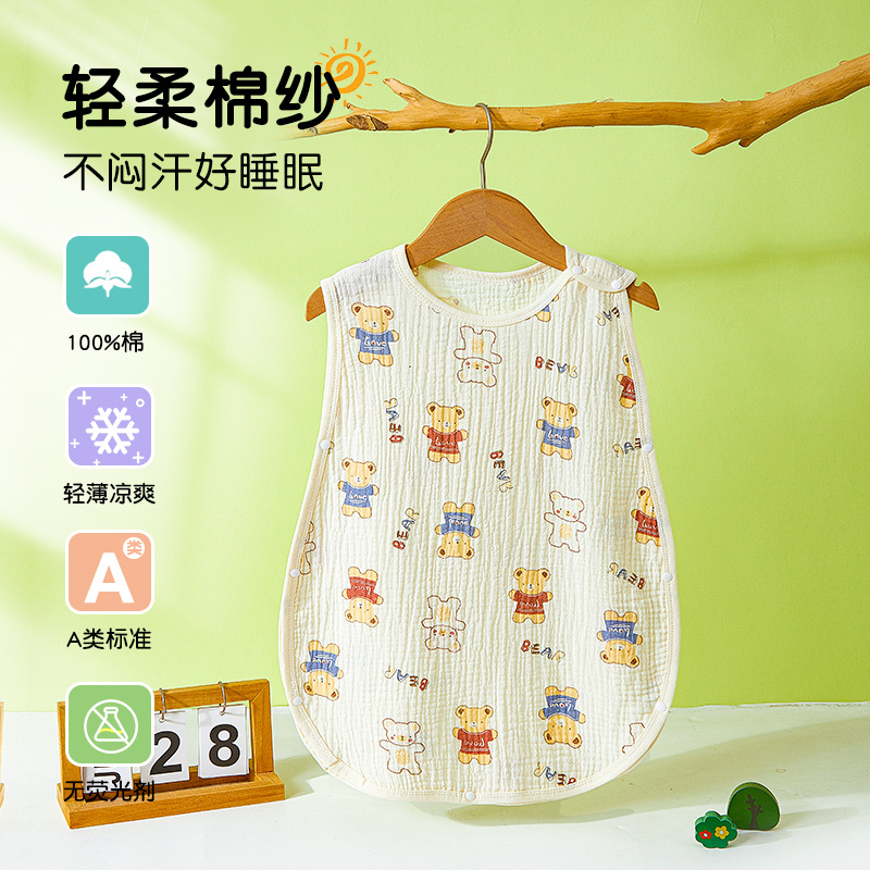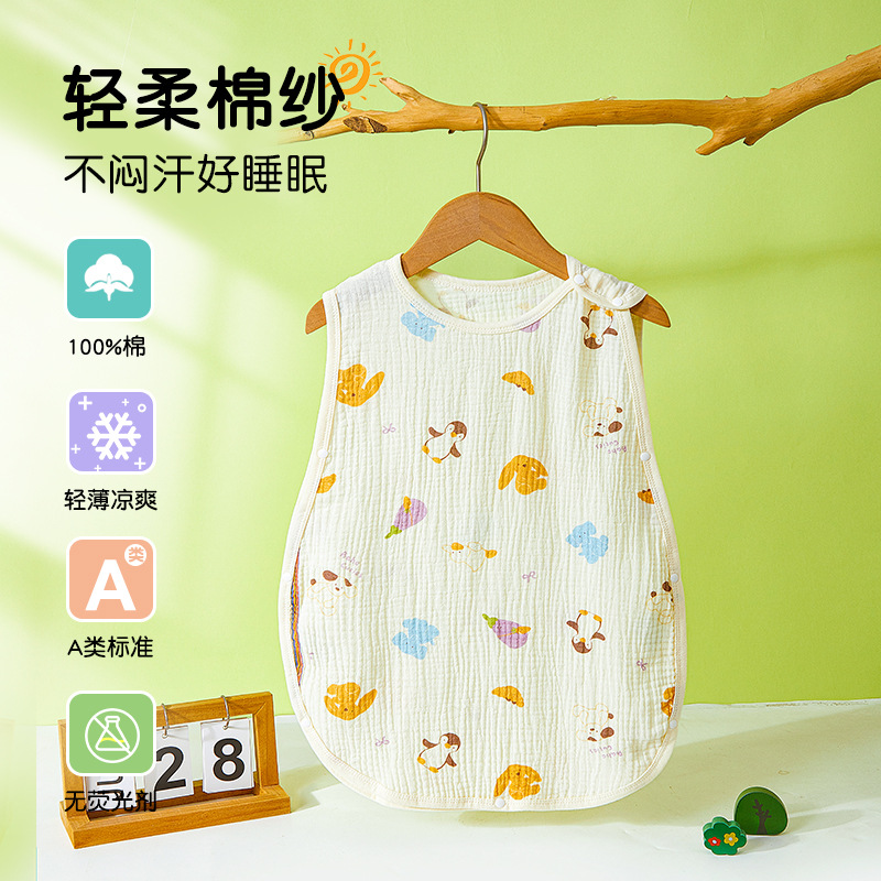 어린이용 발차기 방지 이불, 민소매 조끼, 거즈 침낭, 얇은 순면 크레이프 잠옷, 유아용 만화 무늬스토어 가기