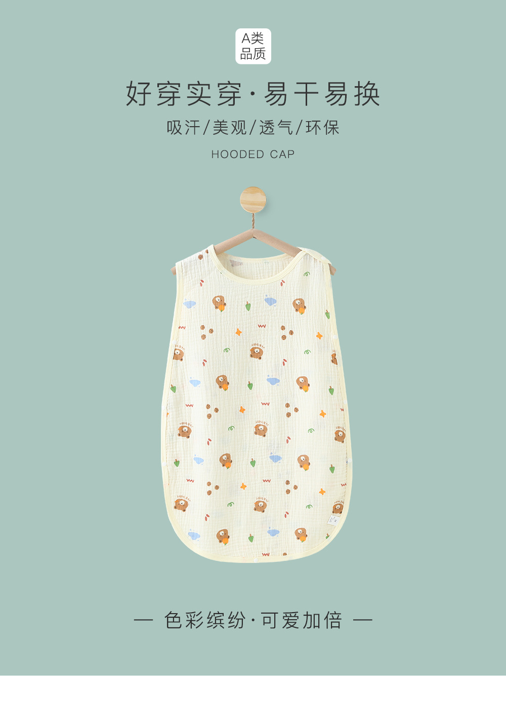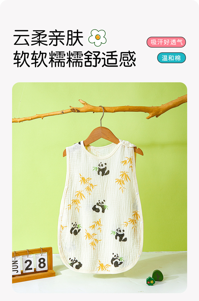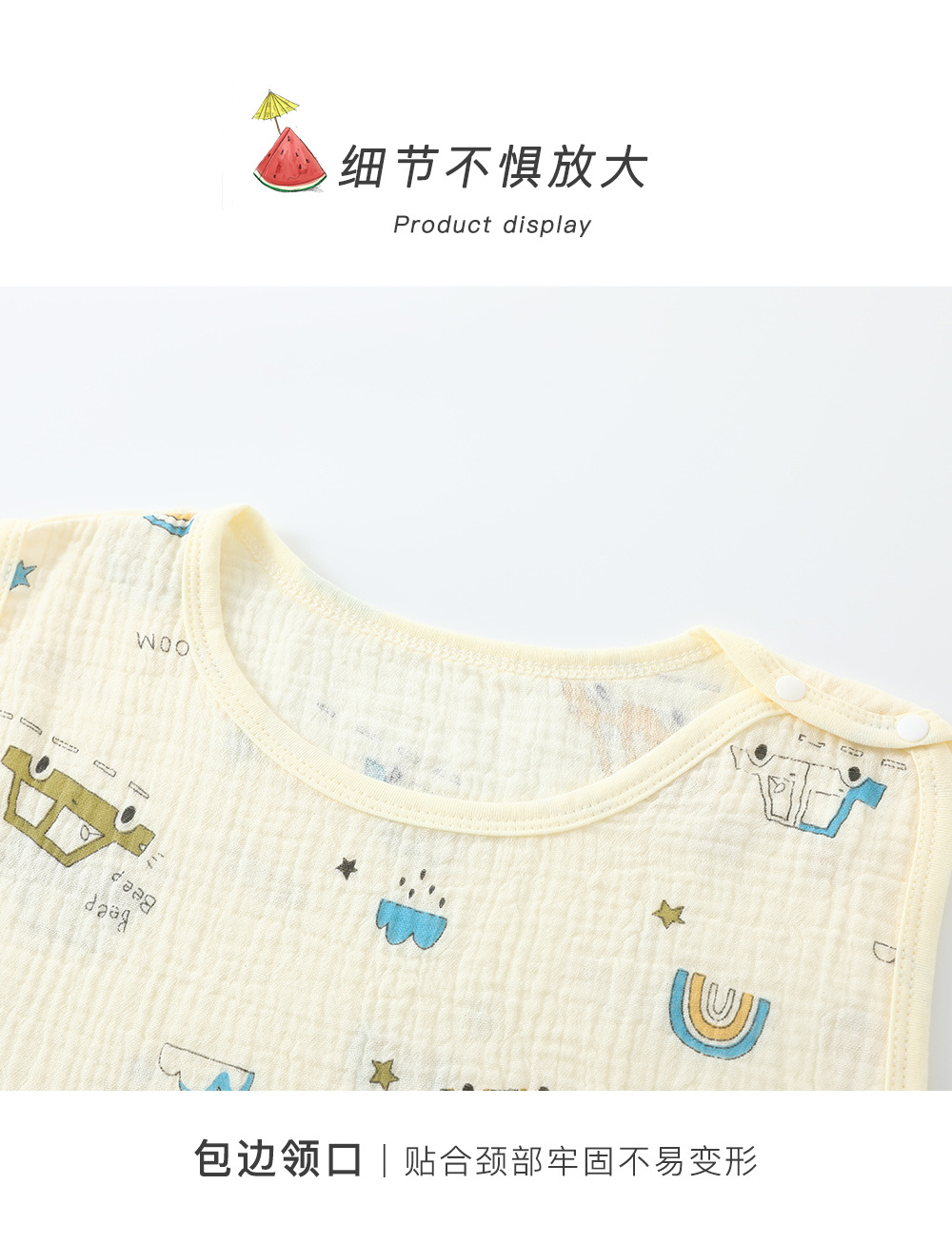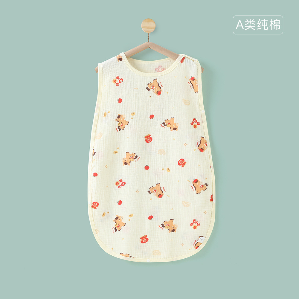 어린이용 발차기 방지 이불, 민소매 조끼, 거즈 침낭, 얇은 순면 크레이프 잠옷, 유아용 만화 무늬스토어 가기