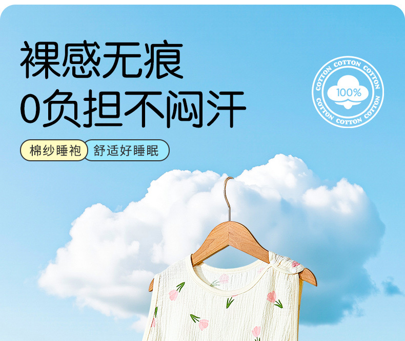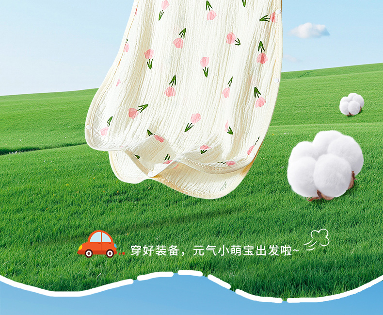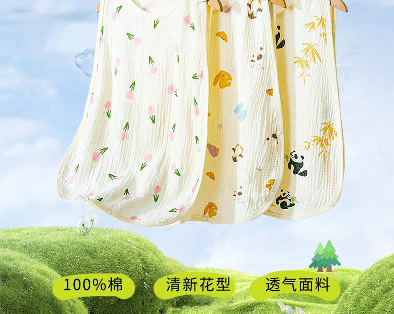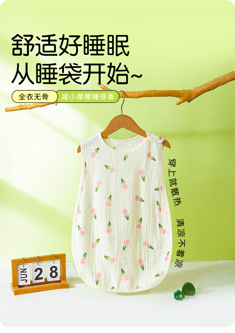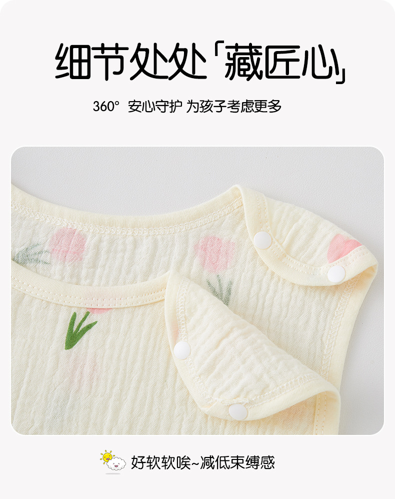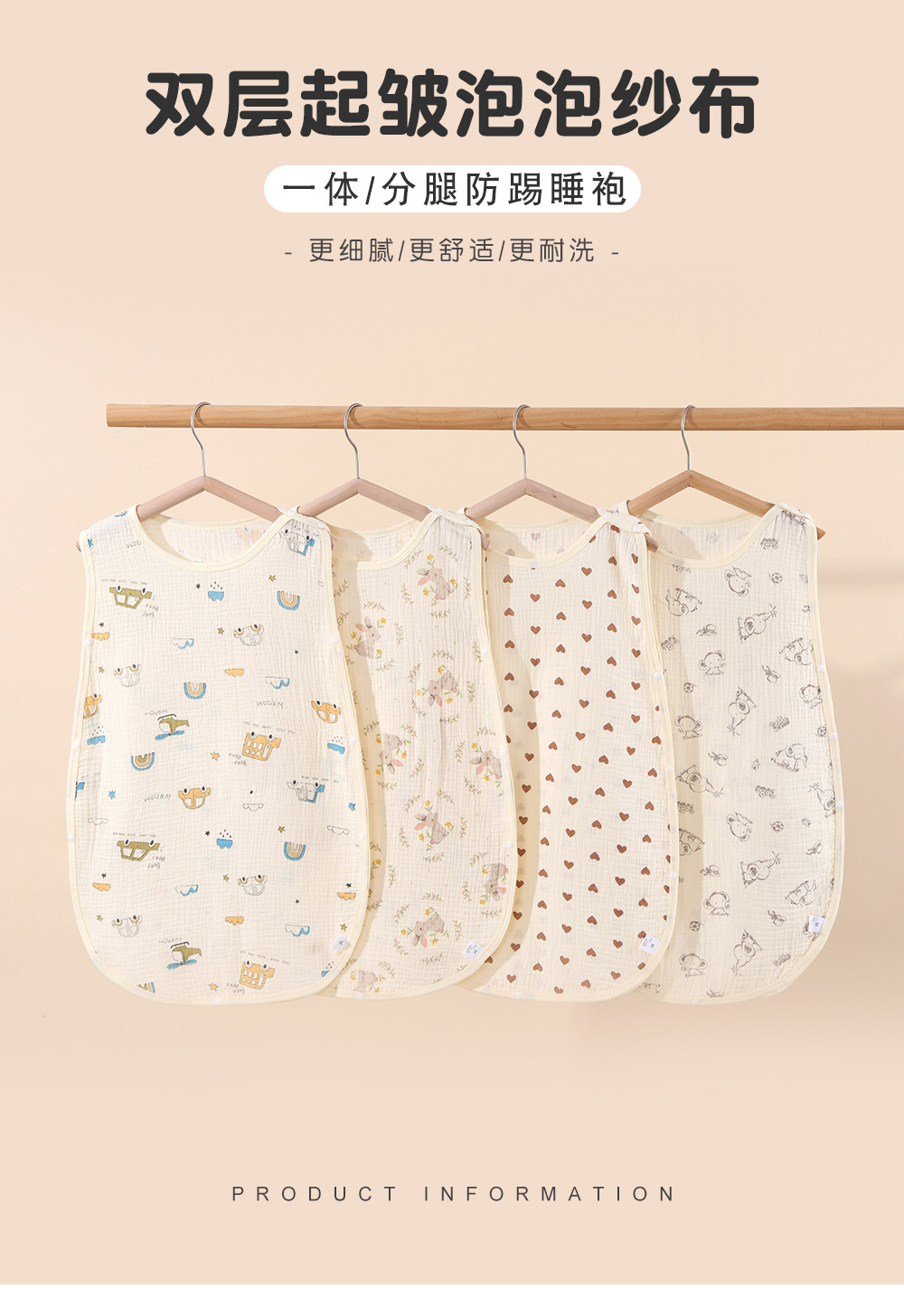 어린이용 발차기 방지 이불, 민소매 조끼, 거즈 침낭, 얇은 순면 크레이프 잠옷, 유아용 만화 무늬스토어 가기