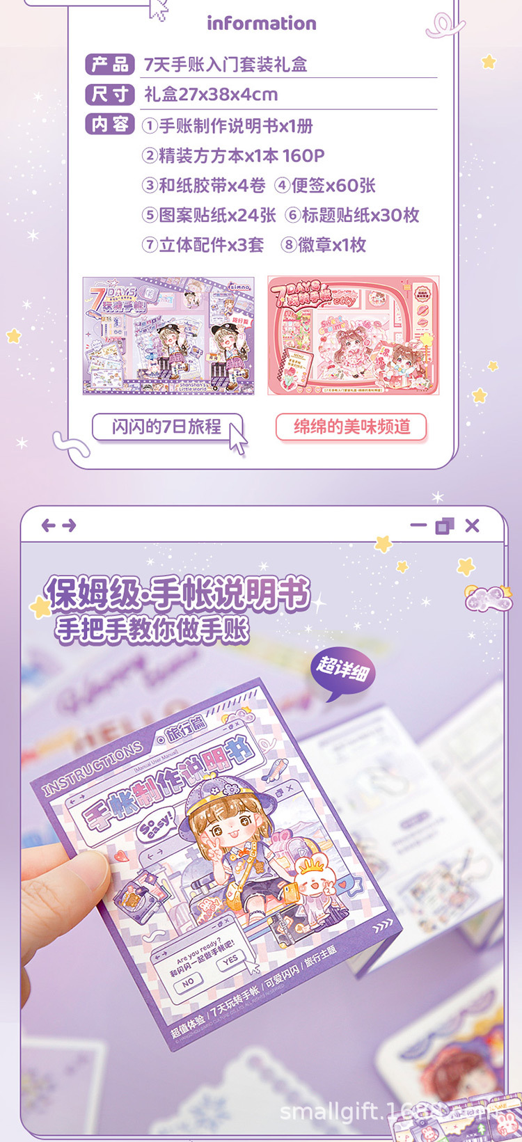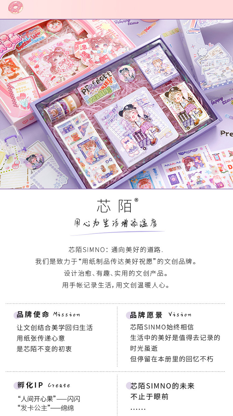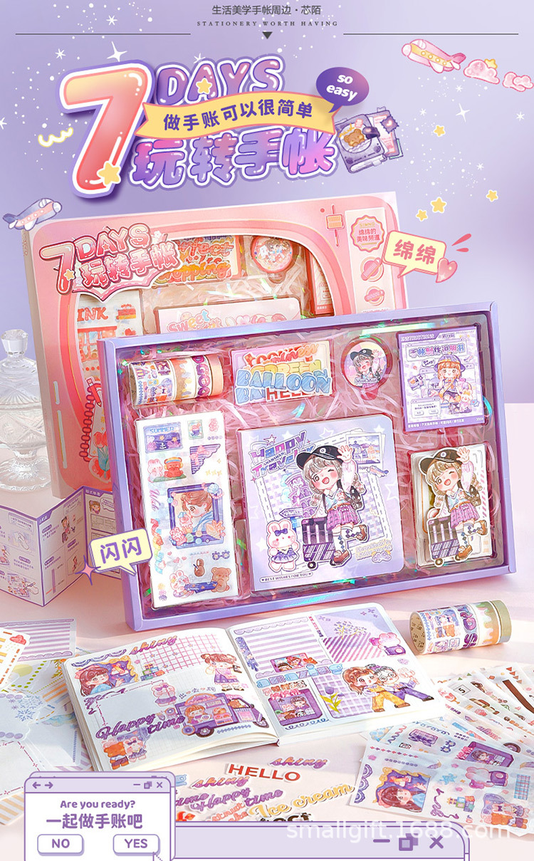 芯陌 7天手帐入门套装礼盒可爱卡通少女心开学季小学生送礼物套装스토어 가기