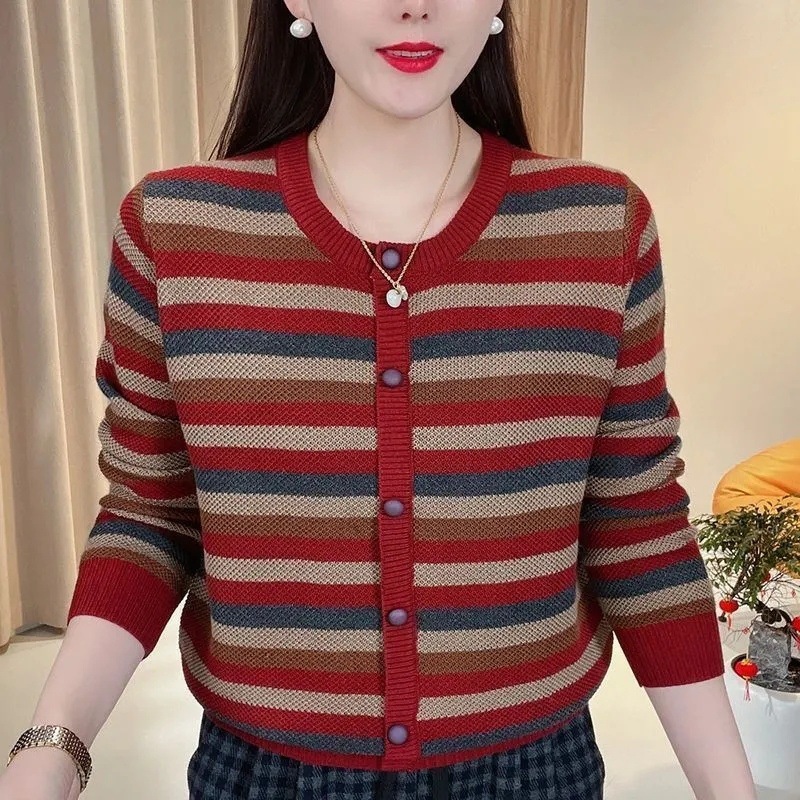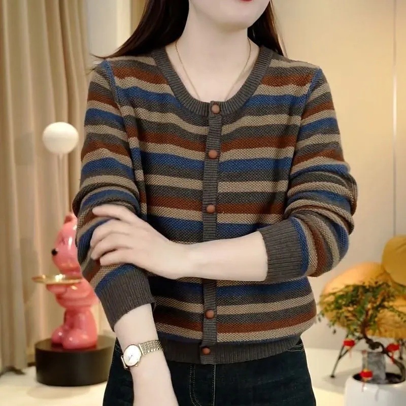 스트라이프 스웨터 가을 긴팔 패셔너블 여성 패셔너블 다용도 루즈 슬리밍 레트로 스타일 뉴 탑 트렌디