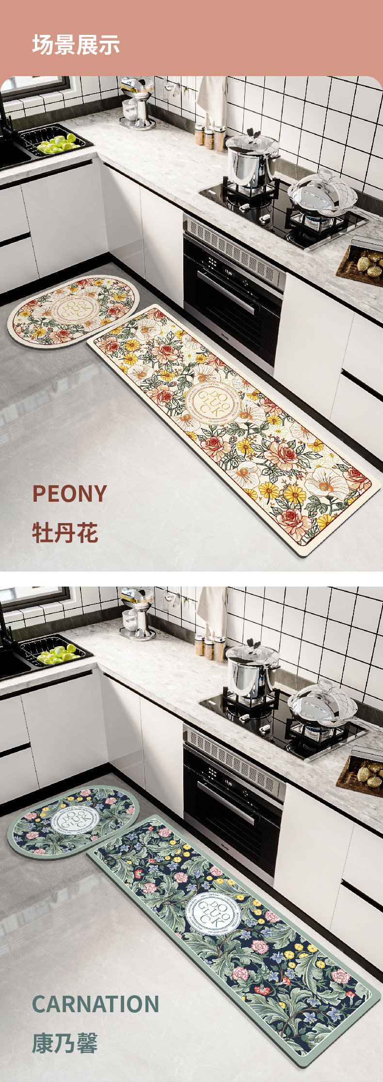 2023 새로운 꽃 새로운 중국 주방 diatom 진흙 카펫 매트 흔들 빠른 뜨거운 판매 가정용 카펫 제조 업체 도매