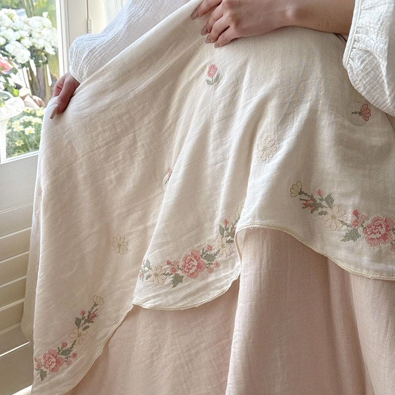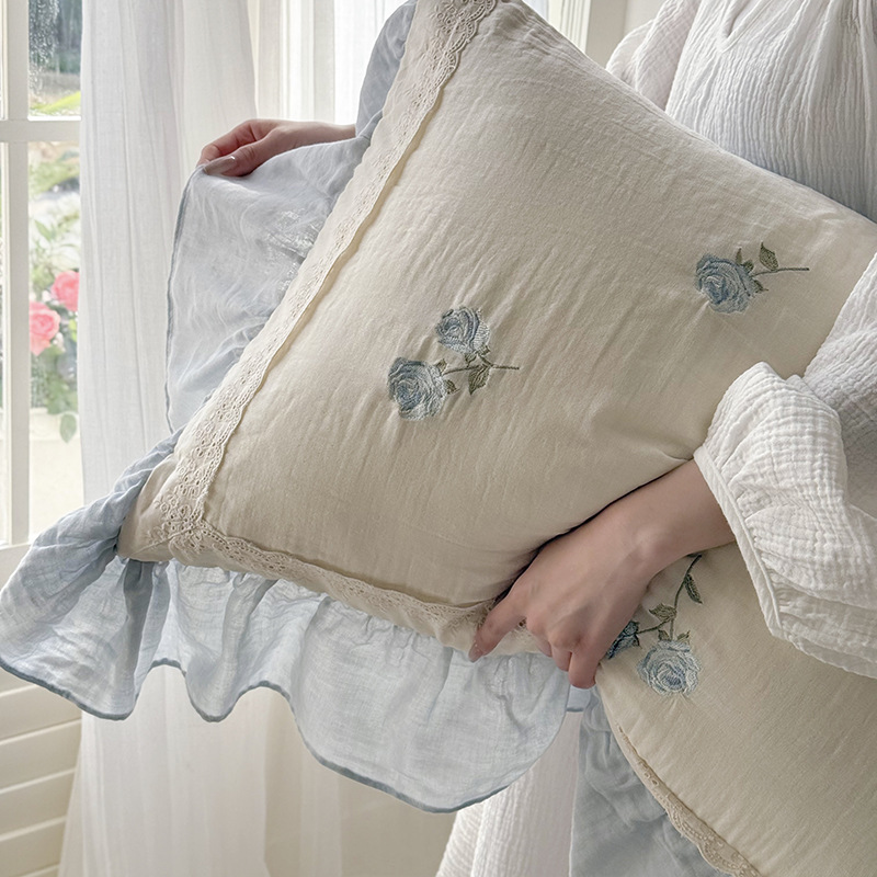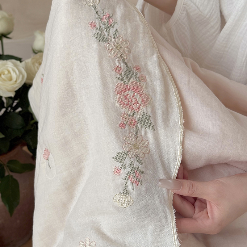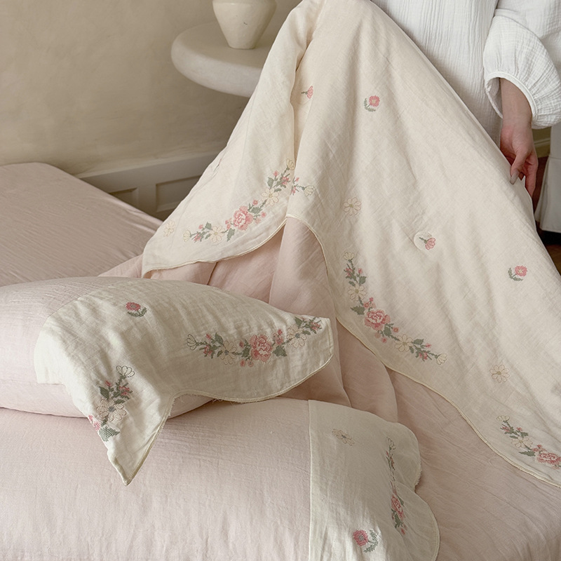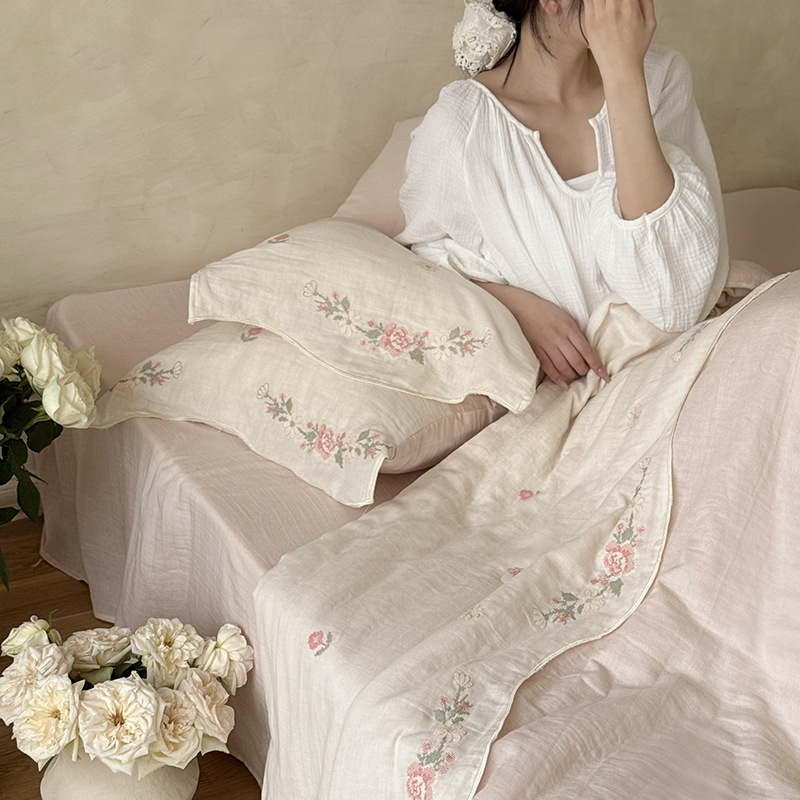 프렌치 침구 여름 이불 순면 주름진 이중 원사 알몸 수면 부드러운 에어컨 이불 세탁기로 세탁 가능한 여름 시원한 이불 4종 세트스토어 가기