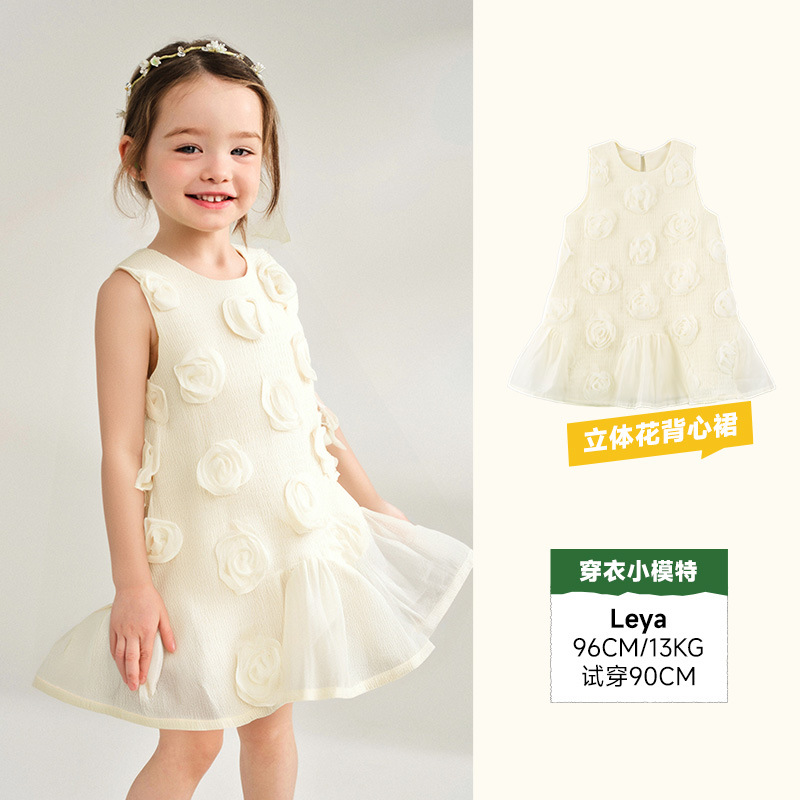 통베이 아동복 2025 여름 새 소녀 원피스 입체 꽃 민소매 달콤한 치마 큰 치마스토어 가기