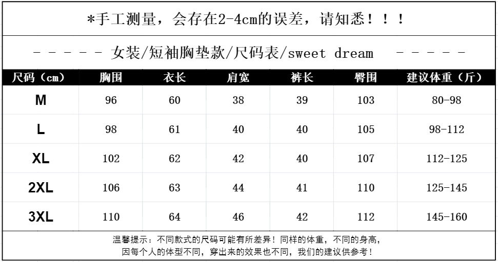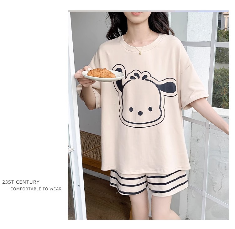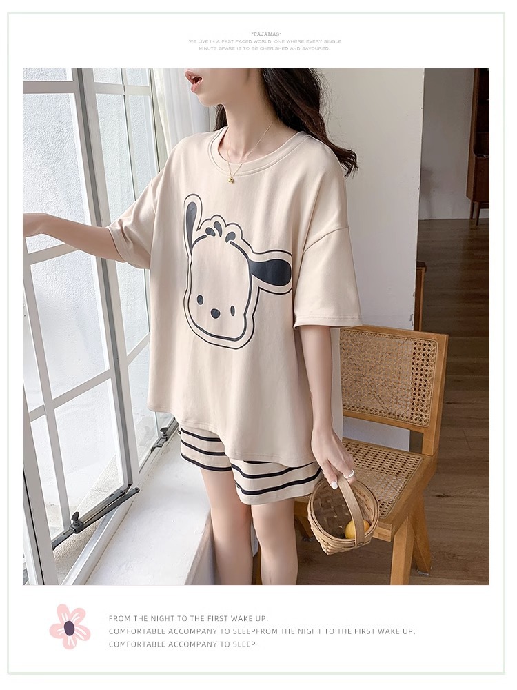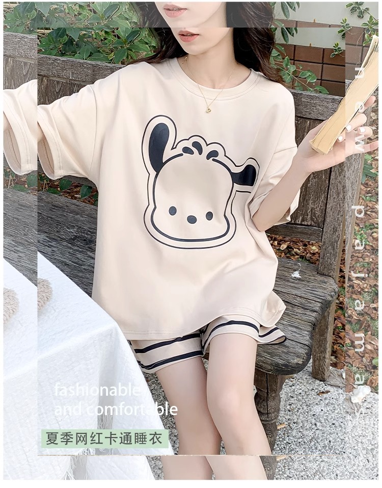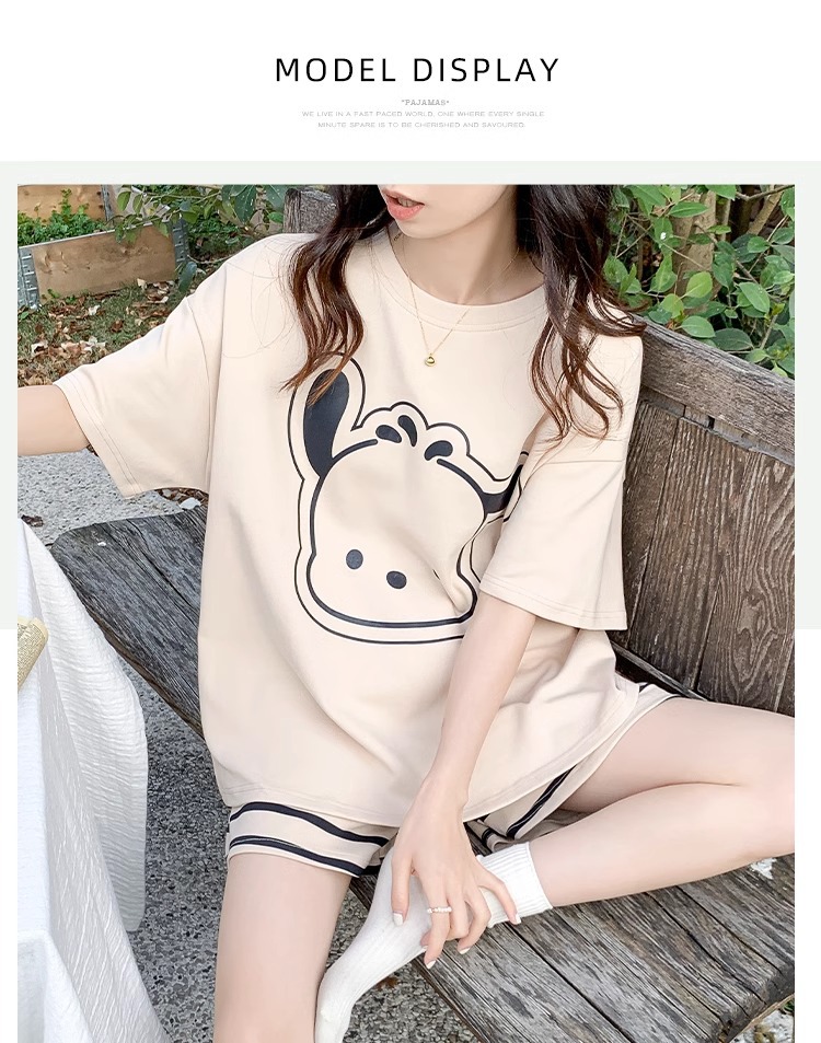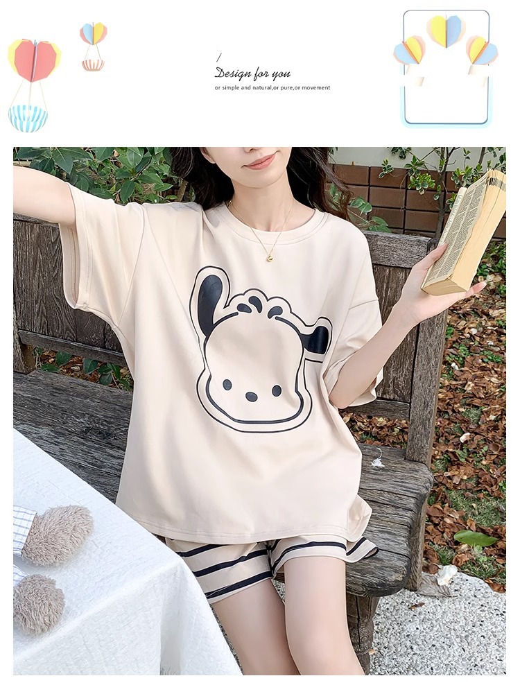 여름 시원한 잠옷 여성용 반팔 캐주얼 귀여운 만화 통통녀 가슴 패드 투피스 세트와 경량 편안한 홈 웨어